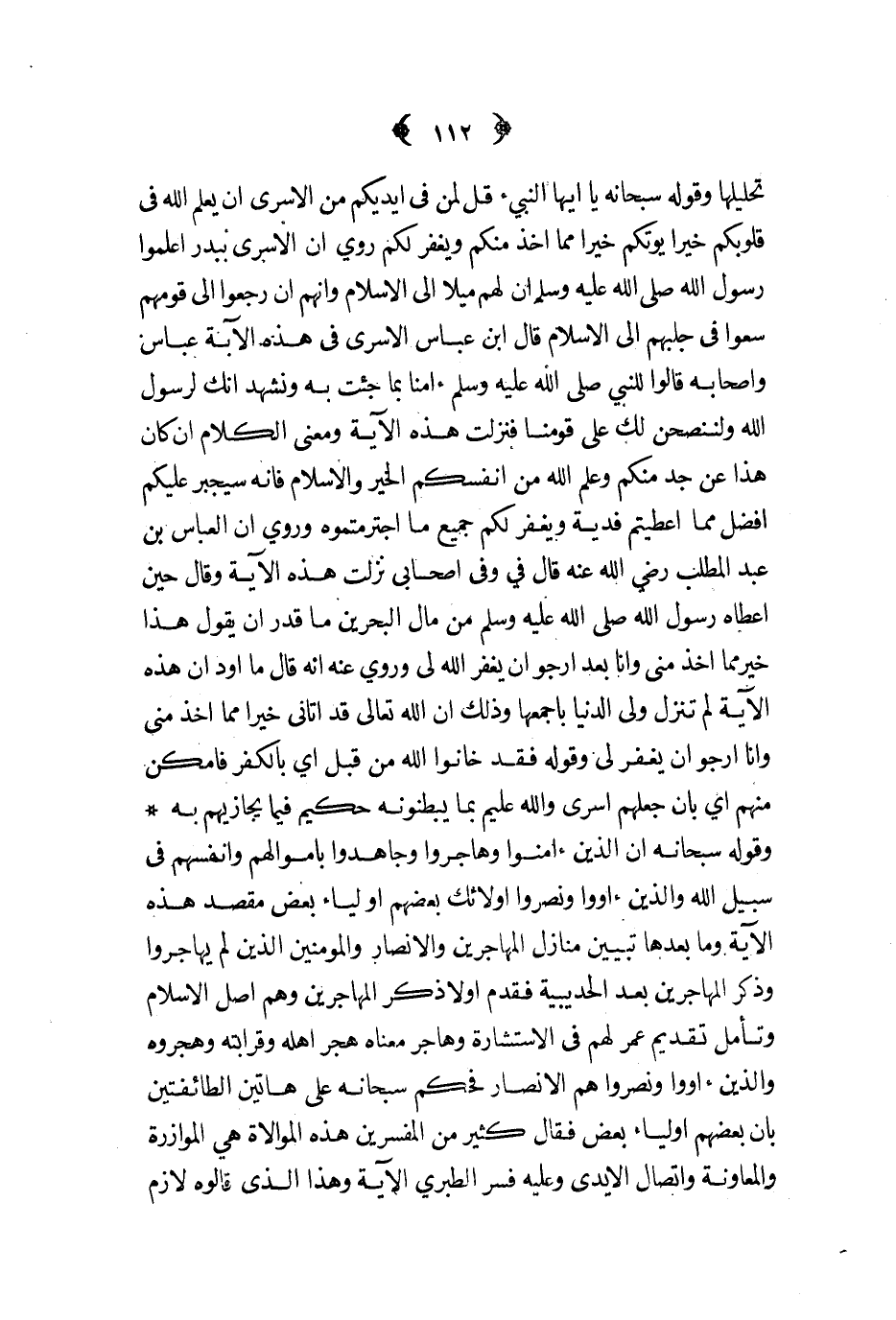 تحليلها وقوله سبحانه يا أيها النبي قل لمن في أيديكم من الأسرى أن يعلم الله في قلوبكم خيرا يؤتكم خيرا مما أخذ منكم ويغفر لكم روي أن الأسرى ببدر اعلموا رسول الله صلى الله عليه و سلم أن لهم ميلا إلى الإسلام وأنهم إن رجعوا إلى قومهم سعوا في جلبهم إلى الإسلام قال ابن عباس الأسرى في هذه الآية عباس وأصحابه قالوا للنبي صلى الله عليه و سلم آمنا بما جئت به ونشهد أنك لرسول الله ولننصحن لك على قومنا فنزلت هذه الآية ومعنى الكلام إن كان هذا عن جد منكم وعلم الله من أنفسكم الخير والإسلام فإنه سيجبر عليكم أفضل مما أعطيتم فدية ويغفر لكم جميع ما أجترمتموه وروي أن العباس بن عبد المطلب رضي الله عنه قال في وفي أصحابي نزلت هذه الآية وقال حين أعطاه رسول الله صلى الله عليه و سلم من مال البحرين ما قدر أن يقول هذا خير مما أخذ مني وأنا بعد أرجو أن يغفر الله لي وروي عنه أنه قال ما أود أن هذه الآية لم تنزل ولي الدنيا بأجمعها وذلك أن الله تعالى قد أتاني خيرا مما أخذ مني وأنا أرجو أن يغفر لي وقوله فقد خانوا الله من قبل أي بالكفر فأمكن منهم أي بأن جعلهم أسرى والله عليم بما يبطنونه حكيم فيما يجازيهم به