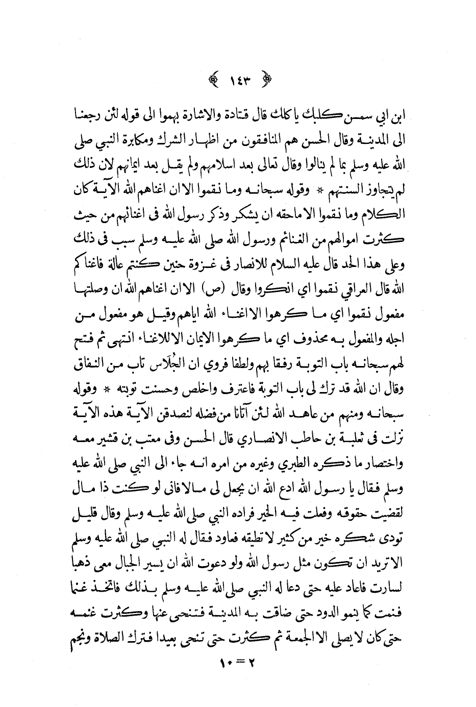 وقوله سبحانه ومنهم من عاهد الله لئن آتانا من فضله لنصدقن الآية هذه الآية نزلت في ثعلبة بن حاطب الأنصاري قال الحسن وفي معتب بن قشير معه واختصار ما ذكره الطبري وغيره من أمره أنه جاء إلى النبي صلى الله عليه و سلم فقال يا رسول الله أدع الله أن يجعل لي مالا فإني لو كنت ذا مال لقضيت حقوقه وفعلت فيه الخير فراده النبي صلى الله عليه و سلم وقال قليل تودي شكره خي رمن كثير لا تطيقه فعاود فقال له النبي صلى الله عليه و سلم ألا تريد أن تكون مثل رسول الله ولو دعوت الله أن يسير الجبال معي ذهبا لسارت فأعاد عليه حتى دعا له النبي صلى الله عليه و سلم بذلك فأتخذ غنما فنمت كما ينمو الدود حتى ضاقت به المدينة فتنحى عنها وكثرت غنمه حتى كان لا يصلي إلا الجمعة ثم كثرت حتى تنحى بعيدا فترك الصلاة ونجم