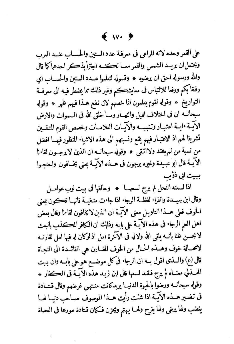 وقوله سبحانه إن الذين لا يرجون لقاءنا الآية قال أبو عبيدة وغيره يرجون في هذه الآية بمعنى يخافون واحتجوا ببيت أبي ذؤيب ... إذا لسعته النحل لم يرج لسعها ... وحالفها في بيت نوب عوامل ...