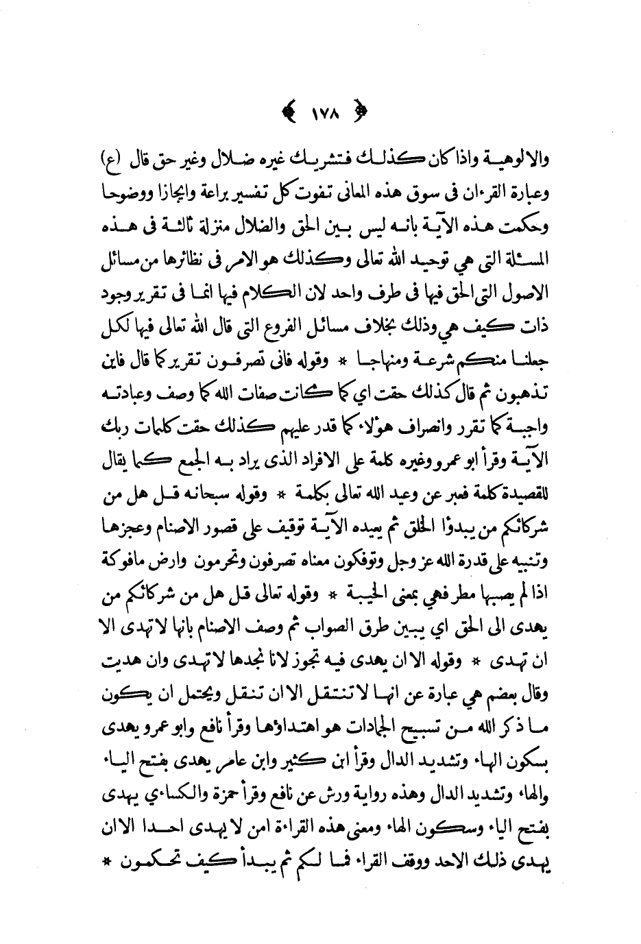 والألوهية وإذا كان كذلك فتشريك غيره ضلال وغير حق قال ع وعبارة القرآن في سوق هذه المعاني تفوت كل تفسير براعة وإيجازا ووضوحا وحكمت هذه الآية بأنه ليس بين الحق والضلال منزلة ثالثة في هذه المسئلة التي هي توحيد الله تعالى وكذلك هو الأمر في نظائرها من مسائل الأصول التي الحق فيها في طرف واحد لأن الكلام فيها إنما في تقرير وجود ذات كيف هي وذلك بخلاف مسائل الفروع التي قال الله تعالى فيها لكل جعلنا منكم شرعة ومنهاجا