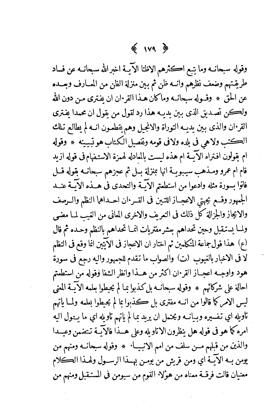 وقوله أم يقولون افتراه الآية أم هذه ليست بالمعادلة لهمزة الاستفهام في قوله أزيد قام أم عمرو ومذهب سيبوية أنها بمنزلة بل ثم عجزهم سبحانه بقوله قل قل فأتوا بسورة مثله وادعوا من استطعتم الآية والتحدي في هذه الآية عند الجمهور وقع بجهتي الإعجاز اللتين في القرآن إحداهما النظم والرصف والإيجاز والجزالة كل ذلك في التعريف والأخرى المعاني من الغيب لما مضى ولما يستقبل وحين تحداهم بعشر مفتريات إنما تحداهم بالنظم وحده ثم قال ع هذا قول جماعة المتكلمين ثم اختار أن الإعجاز في الآيتين إنما وقع في النظم لا في الإخبار بالغيوب ت والصواب ما تقدم للجمهور وإليه رجع في سورة هود واوجه إعجاز القرآن أكثر من هذا وانظر الشفا
