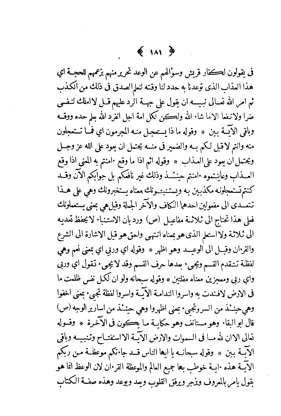 وقوله أثم إذا ما وقع ءامنتم به المعنى إذا وقع العذاب وعاينتموه آمنتم حينئذ وذلك غير نافعكم بل جوابكم الآن وقد كنتم تستعجلونه مكذبين به ويستنبئونك معناه يستخبرونك وهي على هذا تتعدى إلى مفعولين أحدهما الكاف والآخر الجملة وقيل هي بمعنى يستعملونك فعلى هذا تحتاج إلى ثلاثة مفاعيل ص ورد بأن الاستنباء لا يحفظ تعديه إلى ثلاثة ولا استعلم الذي هو بمعناه انتهى وأحق هو قيل الإشارة إلى الشرع والقرآن وقيل إلى الوعيد وهو أظهر
