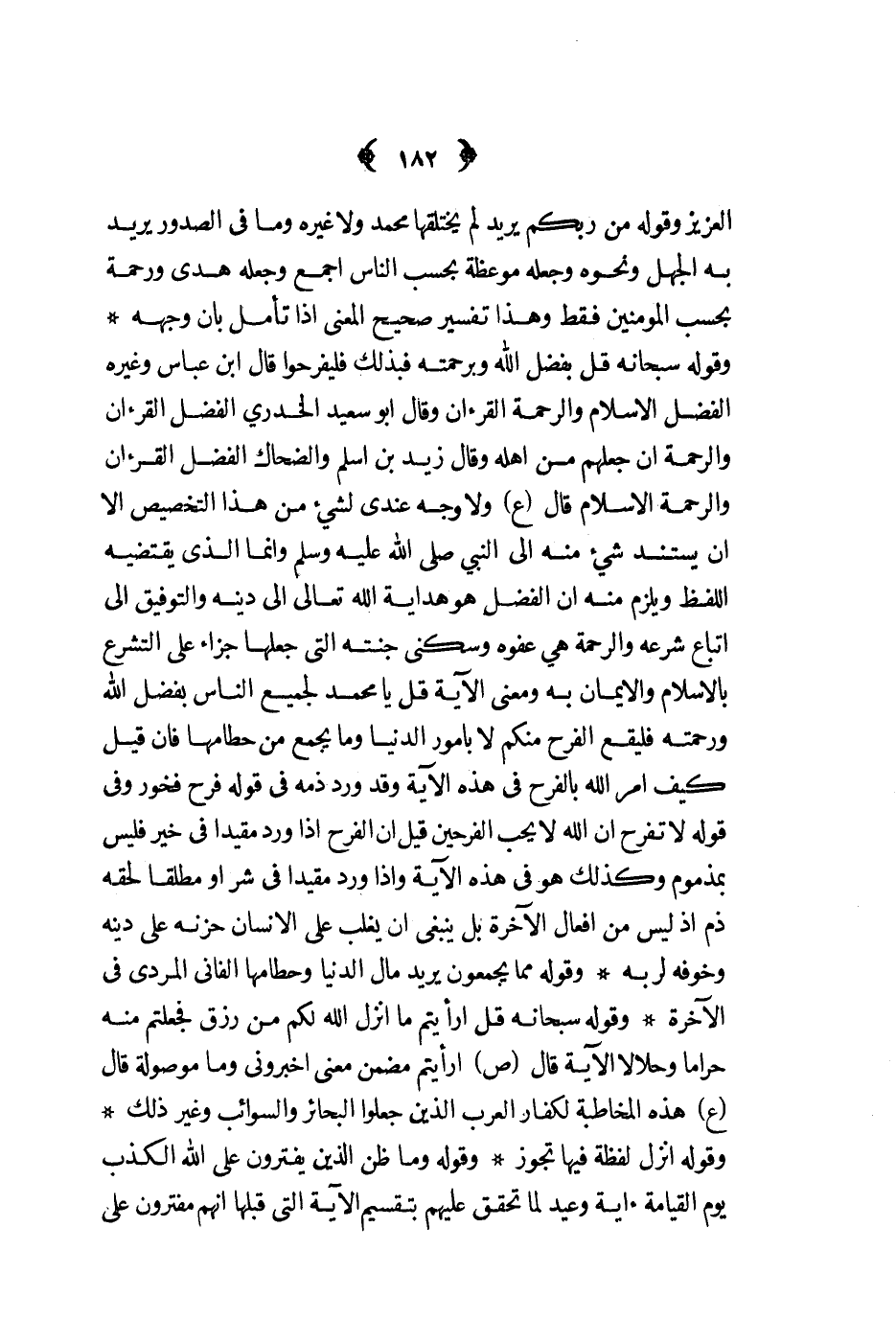 وقوله سبحانه قل بفضل الله وبرحمته فبذلك فليفرحوا قال ابن عباس وغيره الفضل الإسلام والرحمة القرآن وقال أبو سعيد الخدري الفضل القرآن والرحمة أن جعلهم من أهله وقال زيد بن أسلم والضحاك الفضل القرآن والرحمة الإسلام قال ع ولا وجه عندي لشيء من هذا التخصيص إلا أن يستند شيء منه إلى النبي صلى الله عليه و سلم وإنما الذي يقتضيه اللفظ ويلزم منه أن الفضل هو هداية الله تعالى إلى دينه والتوفيق إلى اتباع شرعه والرحمة هي عفوه وسكنى جنته التي جعلها جزاء على التشرع بالإسلام والإيمان به ومعنى الآية قل يا محمد لجميع الناس بفضل الله ورحمته فليقع الفرح منكم لا بأمور الدنيا وما يجمع من حطامها فإن قيل كيف أمر الله بالفرح في هذه الآية وقد ورد ذمه في قوله فرح فخور وفي قوله لا تفرح إن الله لا يحب الفرحين قيل أن الفرح إذا ورد مقيدا في خير فليس بمذموم وكذلك هو في هذه الآية وإذا ورد مقيدا في شر أو مطلقا لحقه ذم إذ ليس من أفعال الآخرة بل ينبغي أن يغلب على الإنسان حزنه على دينه وخوفه لربه