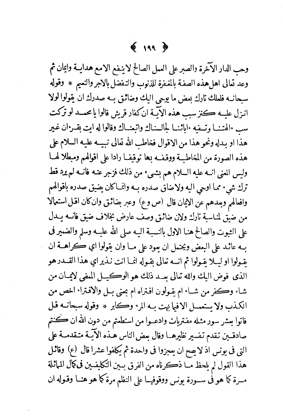وقوله سبحانه قل فأتوا بعشر سور مثله مفتريات وادعوا من استطعتم من دون الله إن كنتم صادقين تقدم تفسير نظيرها وقال بعض الناس هذه الآية متقدمة على التي في يونس إذ لا يصح أن يعجزوا في واحدة ثم يكلفوا عشرا قال ع وقائل هذا القول لم يلحظ ما ذكرناه من الفرق بين التكليفين في كمال المماثلة مرة كما هو في سورة يونس ووقوفها على النظم مرة كما هو هنا وقوله إن
