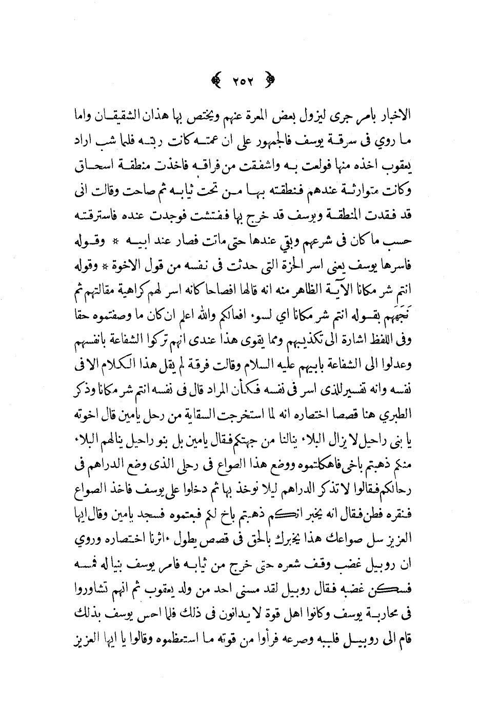 الأخبار بأمر جرى ليزول بعض المعرة عنهم ويختص بها هذان الشقيقان وأما ما روي في سرقة يوسف فالجمهور على أن عمته كانت ربته فلما شب أراد يعقوب أخذه منها فولعت به وأشفقت من فراقه فأخذت منطقة إسحاق وكانت متوارثة عندهم فنطقته بها من تحت ثيابه ثم صاحب وقالت إني قد فقدت المنطقة ويوسف قد خرج بها ففتشت فوجدت عنده فاسترقته حسب ما كان في شرعهم وبقي عندها حتى ماتت فصار عند أبيه وقوله فاسرها يوسف يعني أسر الخرة التي حدثت في نفسه من قول الأخوة وقوله أنتم شر مكانا الآية الظاهرمنه أنه قالها افصاحا كأنه أسر لهم كراهية مقالتهم ثم نجههم بوقهل أنتم شر مكانا أي لسوء أفعالكم والله أعلم إن كان ما وصفتموه حقا وفي اللفظ إشارة إلى تكذبيهم ومما يقوي هذا عندي أنهم تركوا الشفاعة بأنفسهم وعدلوا إلى الشفاعة بأبيهم عليه السلام وقالت فرقة لم يقل هذا الكلام إلا في نفسه وأنه تفسير للذي أسر في نفسه فكأن المراد قال في نفسه انتم شر مكانا وذكر الطبري هنا قصصا اختصاره أنه لما استخرجت السقاية من رحل يامين قال أخوته يا بني راحيل لا يزال البلاء ينالنا من جهتكم فقال يامين بل بنو راحيل ينالهم البلاء منكم ذهبتم بأخي فأهكتموه ووضع هذا الصواع في رحلي الذي وضع الدراهم في رحالكم فقالوا لا تذكر الدراهم ليلا نؤخذ بها ثم دخلوا على يوسف فأخذ الصواع فنقره فظن فقال أنه يخبر أنكم ذهبتم بأخ لكم فبعتموه فسجد يامين وقال أيها العزيز سل سواعك هذا يخبرك بالحق في قصص يطول أثرنا اختصاره وروي أن روبيل غضب وقف شعره حتى خرج من ثيابه فأمر يوسف بنياله فمسه فسكن غضبه فقال روبيل لقد مسني أحد من ولد يعقوب ثم أنهم تشاوروا في محاربة يوسف وكانوا أهل قوة لا يدانون في ذل فلما أحس يوسف بذلك قال إلى روبيل فلببه وصرعه فرأوا من قوته ما استعظموه وقالوا يا أيها العزيز
