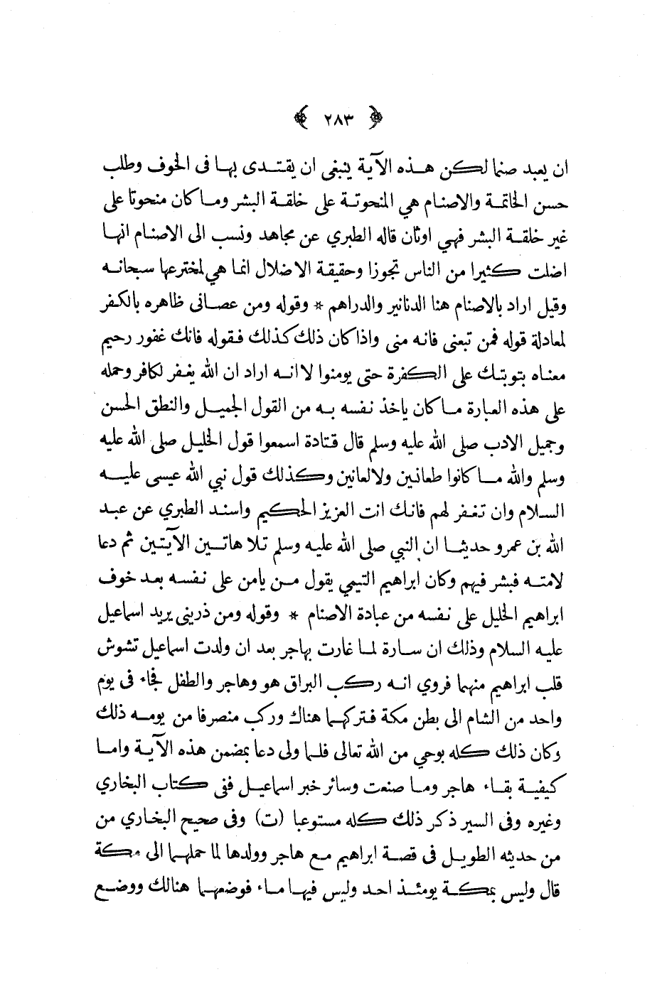 أن يعبد صنما لكن هذه الآية ينبغي أن يقتدى بها في الخوف وطلب حسن الخاتمة والأصنام هي المنحوتة على خلقة البشر وما كان منحوتا على غير خلقه البشر فهي أوثان قاله الطبري عن مجاهد ونسب إلى الأصنام أنها أضلت كثيرا من الناس تجوزا وحقيقة الأضلال إنما هي لمخترعها سبحانه وقيل أراد بالأصنام هنا الدنانير والدراهم