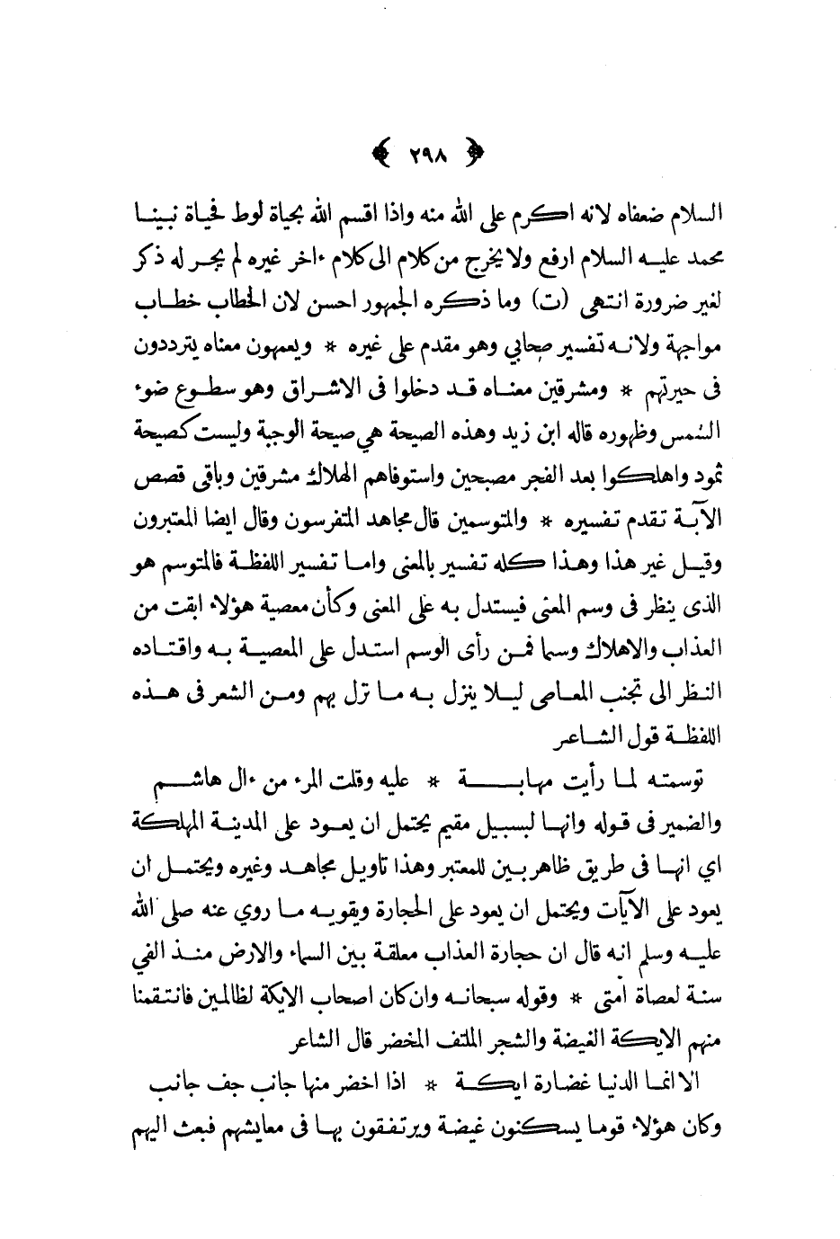 السلام ضعفاه لأنه أكرم على الله منه وإذا أقسم الله بحياة لوط فحياة نبينا محمد عليه السلام أرفع ولا يخرج من كلام إلى كلام آخر غيره لم يجر له ذكر لغير ضرورة انتهى ت وما ذكره الجمهور أحسن لأن الخطاب خطاب مواجهة ولأنه تفسير صحابي وهو مقدم على غيره ويعمهون معناه يترددون في حيرتهم ومشرقين معناه قد دخلوا في الأشراق وهو سطوع ضوء الشمس وظهوره قاله ابن زيد وهذه الصيحة هي صحية الوجبة وليست كصيحة ثمود وأهلكوا بعد الفجر مصبحين واستوفاهم الهلاك مشرقين وباقي قصص الآية تقدم تفسيره والمتوسمين قال مجاهد المتفرسون وقال أيضا المعتبرون وقيل غير هذا وهذا كله تفسر بالمعنى وأما تفسير اللفظة فالمتوسم هو الذي ينظر في وسم المعنى فيستدل به على المعنى وكأن معصية هؤلاء ابقت من العذاب والأهلاك وسما فمن رأى الوسم استدل على المعصية به واقتاده النظر إلى تجنب المعاصي ليلا ينزل به ما نزل بهم ومن الشعر في هذه اللفظة قول الشاعر ... توسمته لما رأيت مهابة ... عليه وقلت المرء من ءال هاشم ...