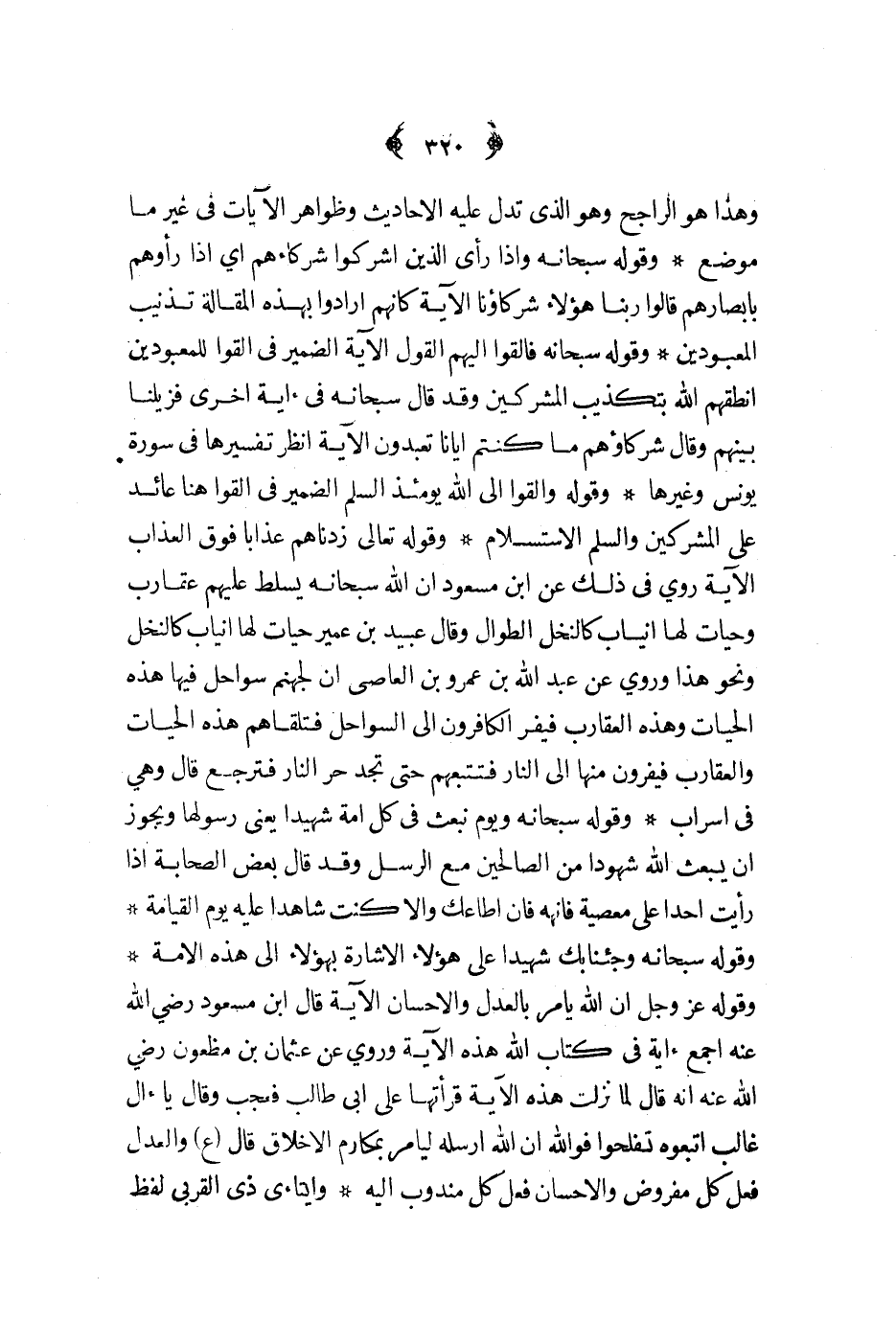 وقوله سبحانه ويوم نبعث في كل أمة شهيدا يعني رسولها ويجوز أن يبعث الله شهودا من الصالحين مع الرسل وقد قال بعض الصحابة إذا رأيت أحدا على معصية فانهه فإن أطاعك وإلا كنت شاهدا عليه يوم القيامة وقوله سبحانه وجئنا بك شهيد على هؤلاء الإشارة بهؤلاء إلى هذه الأمة وقوله عز و جل إن الله يأمر بالعدل والإحسان الآية قال ابن مسعود رضي الله عنه أجمع آية في كتاب الله هذه الآية وروي عن عثمان بن مظعون رضي الله عنه أنه قال لما نزلت هذه الآية قرأتها على أبي طالب فعجب وقال يا آل غالب اتبعوه تفلحوا فواله إن الله أرسله ليأمر بمكارم الأخلاق قال ع والعدل فعل كل مفروض والإحسان فعل كل مندوب إليه