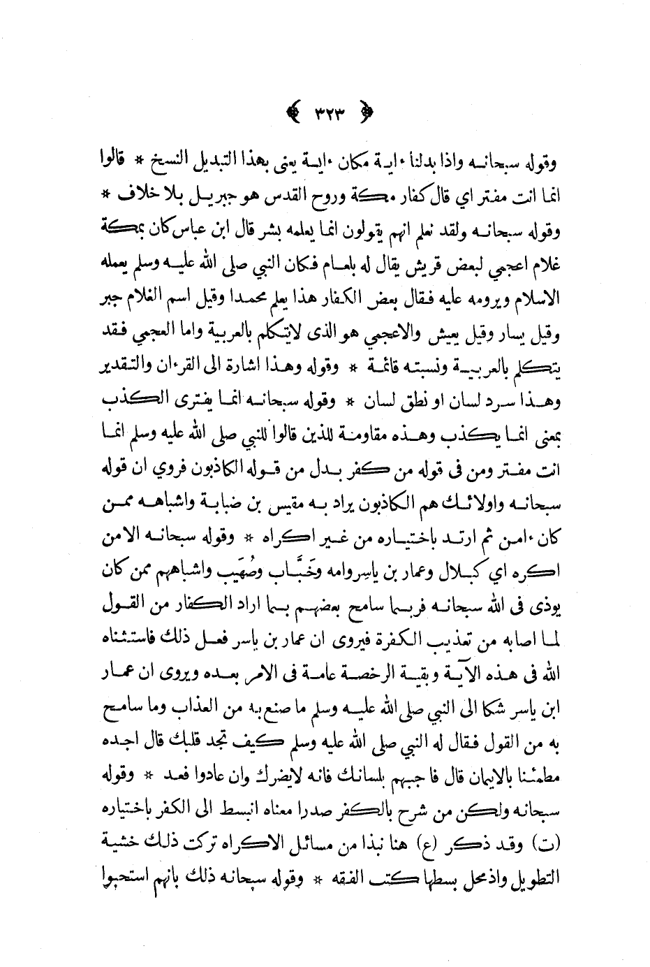 وقوله سبحانه ولقد نعلم أنهم يقولون إنما يعلمه بشر قال ابن عباس كان بمكة غلام أعجمي لبعض قريش يقال له بلعام فكان النبي صلى الله عليه و سلم يعلمه الإسلام ويرومه عليه فقال بعض الكفار هذا يعلم محمدا وقيل اسم الغلام جبر وقيل يسار وقيل يعيش والأعجمي هو الذي لا يتكلم بالعربية وأما العجمي فقد يتكلم بالعربية ونسبته قائمة