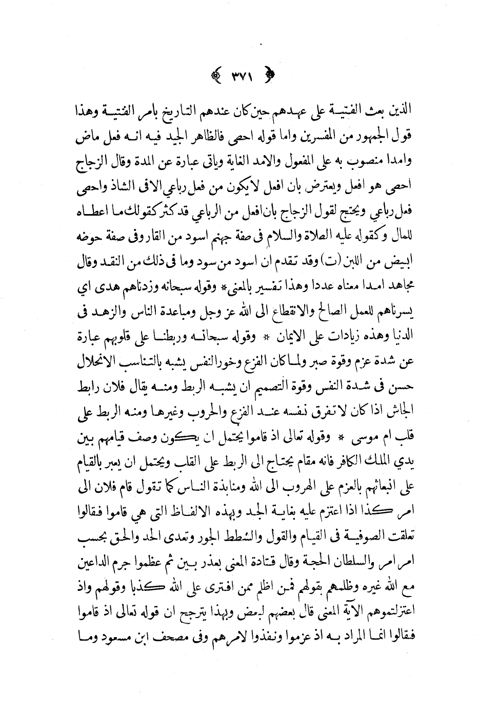 وقوله تعالى إذ قاموا يحتمل أن يكون وصف قيامهم بين يدي الملك الكافر فإنه مقام يحتاج إلى الربط على القلب ويحتمل أن يعبر بالقيام على انبعاثهم بالعزم على الهروب إلى الله ومنابذة الناس كما تقول قام فلان إلى أمر كذا إذا اعتزم عليه بغاية الجد وبهذه الألفاظ التي هي قاموا فقالوا تعلقت الصوفية في القيام والقول والشطط الجور وتعدى الحد والحق بحسب أمر أمر والسلطان الحجة قال قتادة المعنى بعذر بين ثم عظموا جرم الداعين مع الله غيره وظلمهم بقولهم فمن اضلم ممن افترى على الله كذبا ويقولهم وإذ اعتزلتموهم الآية المعنى قال بعضهم لبعض وبهذا يترجح أن قوله تعالى إذ قاموا فقالوا إنما المراد به إذ عزموا ونفذوا لأمرهم وفي مصحف ابن مسعود وما