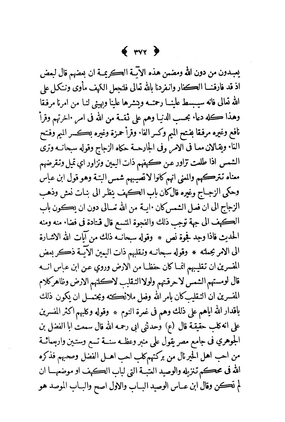 يعبدون من دون الله ومضمن هذه الآية الكريمة أن بعضهم قال لبعض إذ قد فارقنا الكفار وانفردنا بالله تعالى فلنجعل الكهف مأوى ونتكل على الله تعالى فإنه سيبسط علينا رحمته وينشرها علينا ويهيئ لنا من أمرنا مرفقا وهذا كله دعاء بحسب الدنيا وهم على ثقة من الله في أمر أخرتهم وقرأ نافع وغيره مرفقا بفتح الميم وكسر الفاء وقرأ جمزة وغيره بكسر الميم وفتح الفاء ويقالان معا في الأمر وفي الجارحة حكاه الزجاج وقوله سبحانه وترى الشمس إذا طلعت تزاور عن كهفهم ذات اليمين وتزاور أي تميل وتقرضهم معناه تتركهم والمعنى أنهم كانوا لا تصبيهم شمس البتة وهو قول ابن عباس وحكى الزجاج وغيره قال كان باب الكهف ينظر إلى بنات نعش وذهب الزجاج إلى فعل الشمس كأن آية من الله تعالى دون أن يكون باب الكهف إلى جهة توجب ذلك والفجوة المتسع قال قتادة في فضاء منه ومنه الحديث فإذا وجد فجوة نص