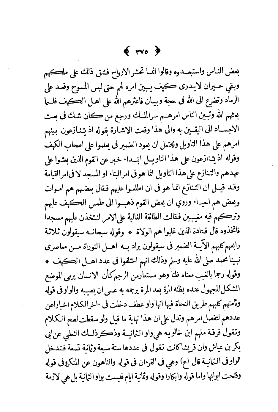 بعض الناس واستبعدوه وقالوا إنما تحشر الأرواح فشق ذلك على ملكهم وبقي حيران لا يدري كيف يبين أمره لهم حتى لبس المسوح وقعد على الرماد وتضرع إلى الله في حجة وبيان فأعثرهم الله على أهل الكهف فلما بعثهم الله وتبين الناس أمرهم سر الملك ورجع من كان شك في بعث الأجساد إلى اليقين به وإلى هذا وقعت الإشارة بقوله إذ يتنازعون بينهم أمرهم على هذا التأويل يحتمل أن يعود الضمير في يعلموا على أصحاب الكهف وقوله إذ يتنازعون على هذا التأويل ابتداء خبر عن القوم الذين بعثوا على عهدهم والتنازع على هذا التأويل إنما هو في أمر البناء أو المسجد لا في أمر القيامة وقد قيل أن التنازع إنما هو في أن اطلعوا عليهم فقال بعضهم هم أموات وبعض هم أحياء وروي أن بعض القوم ذهبوا إلى طمس الكهف عليهم وتركهم فيه مغيبين فقالت الطائفة الغالبة على الأمر لنتخذن عليهم مسجدا فاتخذوه قال قتادة الذين غلبوا هم الولاة