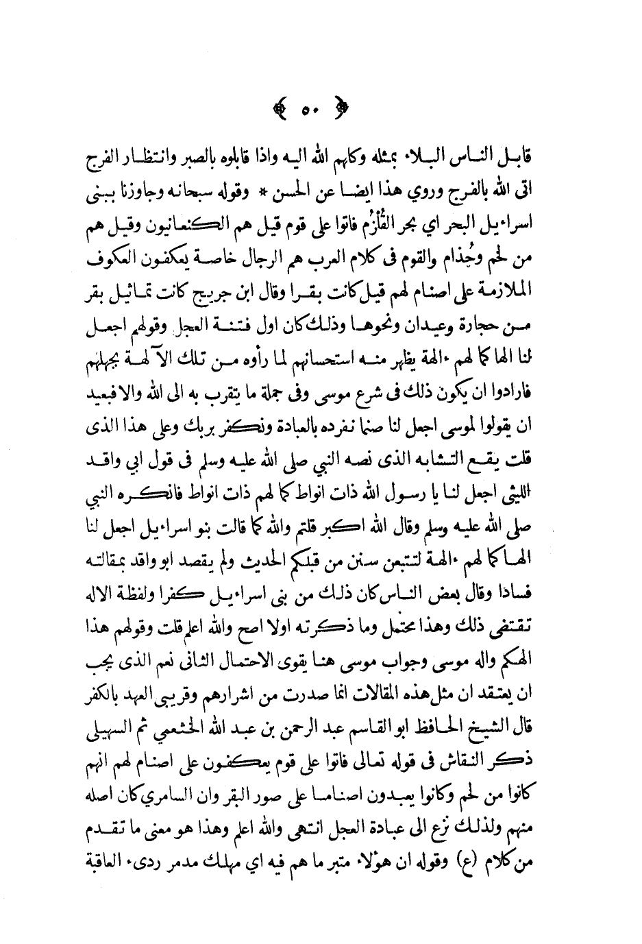 وقوله سبحانه وجاوزنا ببني إسرائيل البحر بحر القلزم فأتوا على قوم قيل هم الكنعانيون وقيل هم من لخم وجذام والقوم في كلام العرب هم الرجال خاصة يعكفون العكوف الملازمة على أصنام لهم قيل كانت بقرا وقال ابن جريج كانت تماثيل بقر من حجارة وعيدان ونحوها وذلك كان أول فتنة العجل وقولهم اجعل لنا إلها كما لهم آلهة يظهر منه استحسانهم لما رأوه من تلك الآلهة بجهلهم فارادوا أن يكون ذلك في شرع موسى وفي جملة ما يتقرب به إلى الله وإلا فبعيد أن يقولوا لموسى أجعل لنا صنما نفرده بالعبادة ونكفر بربك وعلى هذا الذي قلت يقع التشابه الذي نصه النبي صلى الله عليه و سلم في قول أبي واقد الليثي أجعل لنا يا رسول الله ذات أنواط كما لهم ذات أنواط فأنكره النبي صلى الله عليه و سلم وقال الله أكبر قلتم والله كما قالت بنو إسرائيل أجعل لنا إلها كما لهم آلهة لتتبعن سنن من قبلكم الحديث ولم يقصد أبو واقد بمقالته فسادا وقال بعض الناس كان ذلك من بني إسرائيل كفرا ولفسظة الآله تقتضي ذلك وهذا محتمل وما ذكرته أولا أصح والله أعلم قلت وقولهم هذا ألهكم واله موسى وجواب موسى هنا يقوى الاحتمال الثاني نعم الذي يجب أن يعتقد أن مثل هذه المقالات إنما صدرت من اشرارهم وقريبي العهد بالكفر قال الشيخ الحافظ أبو القاسم عبد الرحمن بن عبد الله الخثعمي ثم السهيلي ذكر النقاش في قوله تعالى فأتوا على قوم يعكفون على أصنام لهم انهم كانوا من لحم وكانوا يعبدون أصناما على صور البقر وأن السامري كان أصله منهم ولذلك نزع إلى عبادة العجل انتهى والله أعلم وهذا هو معنى ما تقدم من كلام ع وقوله إن هؤلاء متبر ما هم فيه أي مهلك مدمر رديء العاقبة