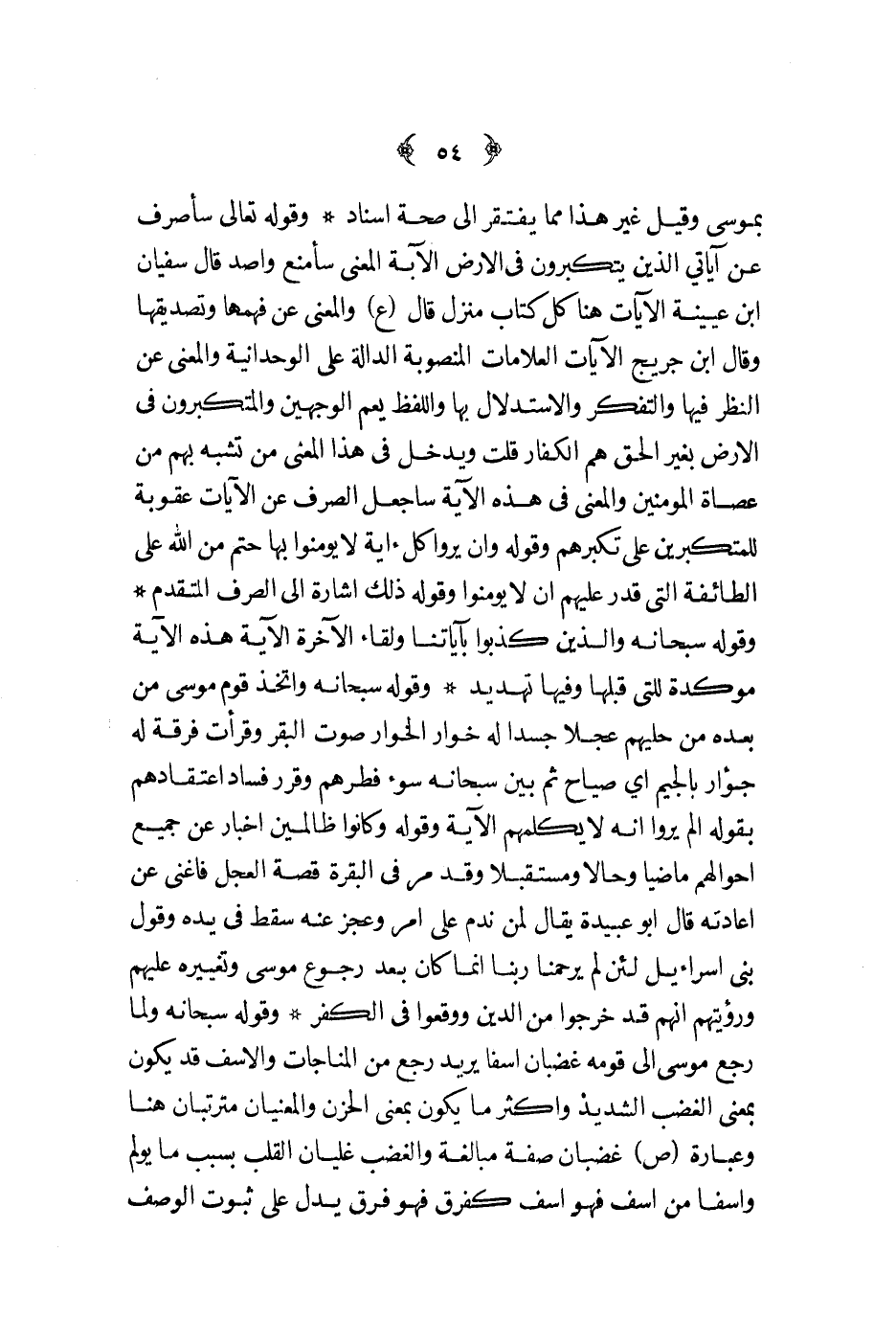 وقوله سبحانه ولما رجع موسى إلى قومه غضبان أسفا يريد رجع من المناجات والأسف قد يكون بمعنى الغضب الشديد وأكثر ما يكون بمعنى الحزن والمعنيان مترتبان هنا وعبارة ص غضبان صفة مبالغة والغضب غليان القلب بسبب ما يؤلم وأسفا من أسف فهو أسف كفرق فهو فرق يدل على ثبوت الوصف