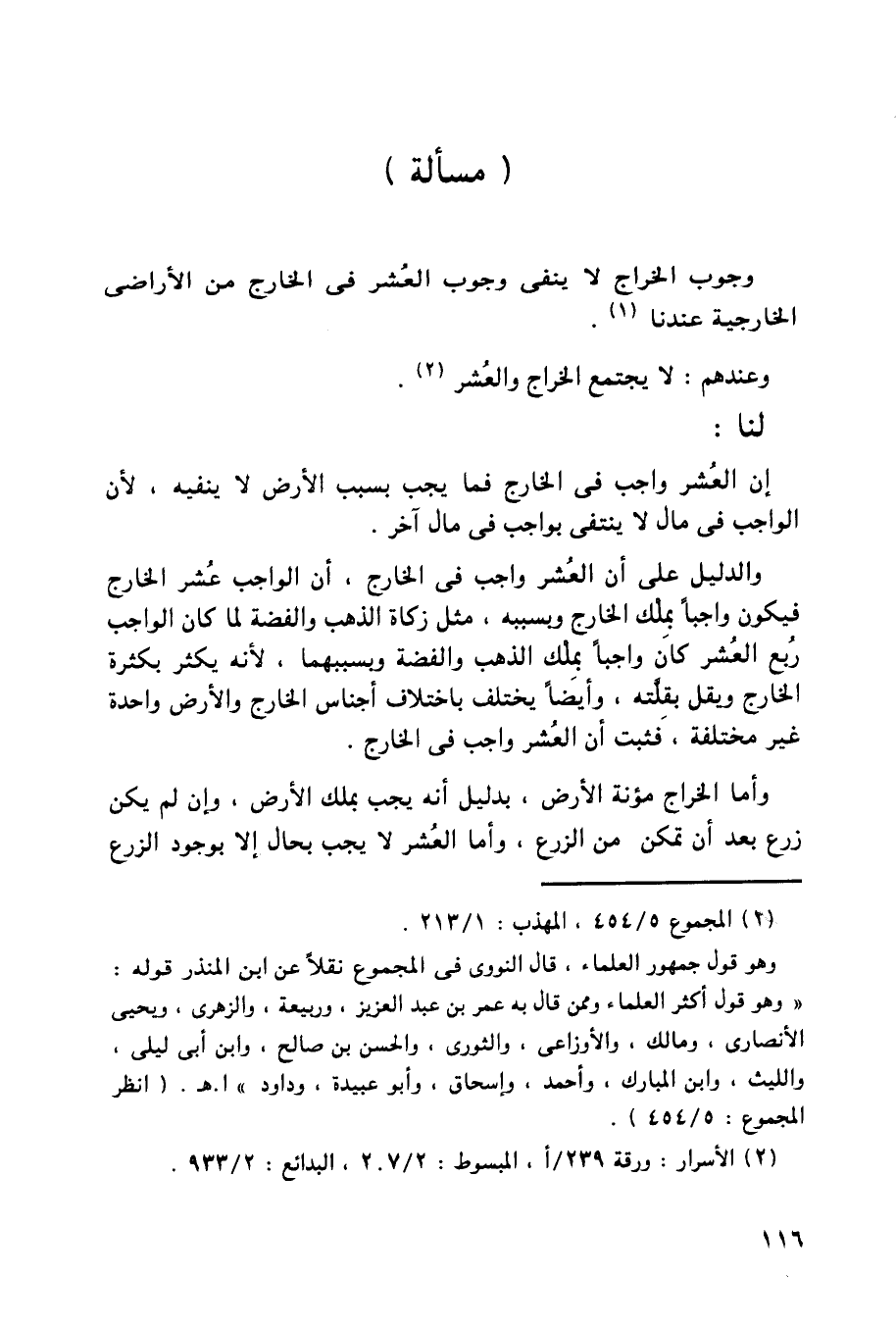 والدليل على أن العشر واجب في الخارج، أن الواجب عشر الخارج فيكون واجباً بملك الخارج وبسببه، مثل زكاة الذهب والفضة لما كان الواجب ربع العشرة كان واجباً بملك الذهب والفضة وبسببهما، لأنه يكثر بكثرة الخارج ويقل بقلته، وأيضاً يختلف باختلاف أجناس الخارج والأرض واحدة غير مختلفة، فثبت أن العشر واجب في الخارج.
