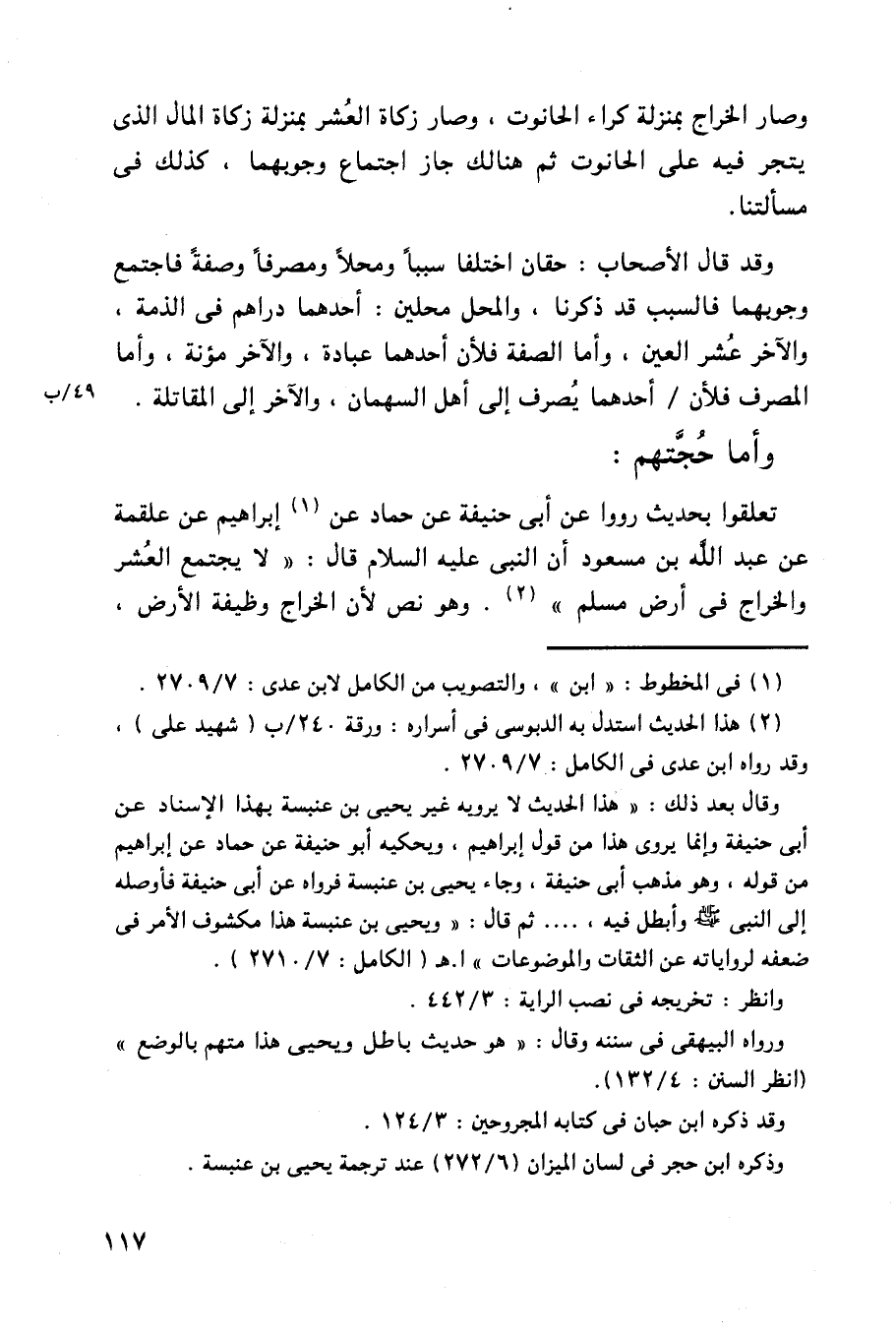 تعلقوا بحديث رووا عن أبي حنيفة عن حماد عن إبراهيم عن علقمة عن عبد الله بن مسعود أن النبي عليه السلام قال: ((لا يجتمع العشر والخراج في أرض مسلم)). وهو نص لأن الخراج وظيفة الأرض،