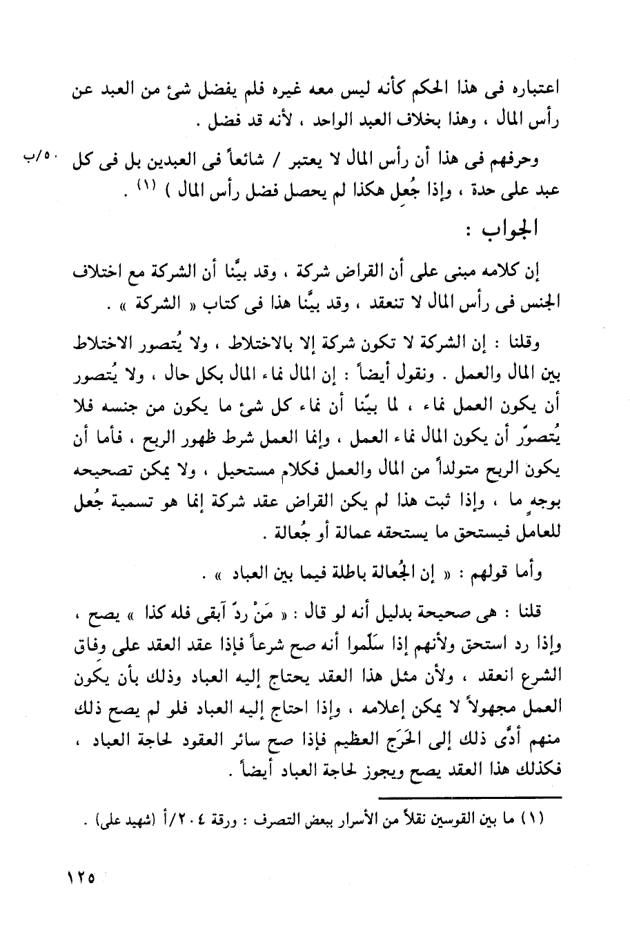 وحرفهم في هذا أن رأس المال لا يعتبر/ شائعاً في العبدين بل في كل عبد على حدة، وإذا جعل هكذا لم يحصل فضل رأس المال).