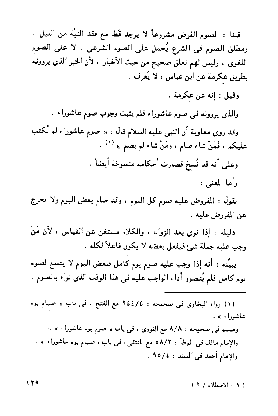 قلنا: الصوم الفرض مشروعاً لا يوجد قط مع فقد النية من الليل، ومطلق الصوم في الشرع يحلم على الصوم الشرعي، لا على الصوم اللغوي، وليس لهم تعلق صحيح من حيث الأخبار، لأن الخبر الذي يروونه بطريق عكرمة عن ابن عباس، لا يعرف.