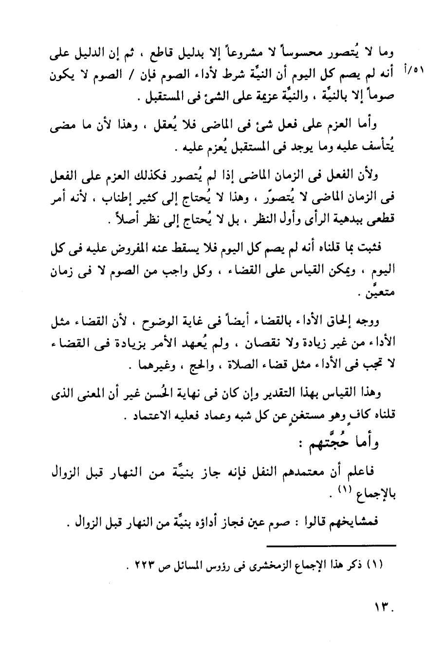 وما لا يتصور محسوساً لا مشروعاً إلا بدليل قاطع، ثم إن الدليل على أنه لم يصم كل اليوم أن النية شرط لأداء الصوم فإن/ الصوم لا يكون صوماً إلا بالنية، والنية عزيمة على الشيء في المستقبل.