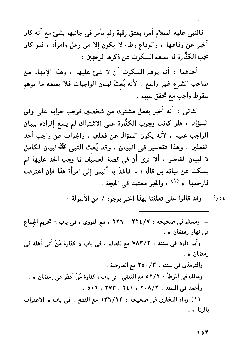 الثاني: أنه أخبر بفعل مشترك من شخصين فوجب جوابه على وفق السؤال، فلو كانت وجوب الكفارة على الاشتراك لم يسع إفراده ببيان الواجب عليه، لأنه يكون السؤال عن فعلين، والجواب عن واجب أحد الفعلين، وهذا تقصير في البيان، وقد بعث النبي - صلى الله عليه وسلم - لبيان الكامل لا لبيان القاصر، ألا ترى أن في قصة العسيف لما وجب الحد عليها لم يسكت عن بيانه بل قال: ((فاغد يا أنيس إلى امرأة فإن اعترفت فارجمها))، والخبر معتمد في الحجة.