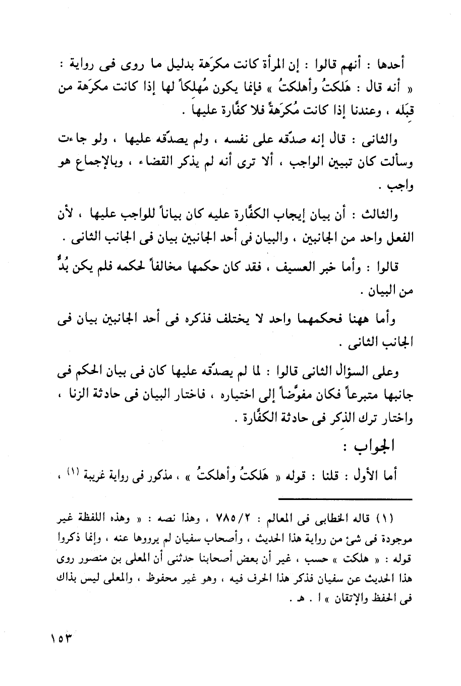 والثالث: أن بيان إيجاب الكفارة عليه كان بياناً للواجب عليها، لأن الفعل واحد من الجانبين، والبيان في أحد الجانبين بيان في الجانب الثاني.