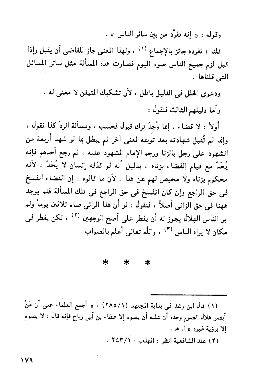 قلنا: تفرده جائز بالإجماع، ولهذا المعنى جاز للقاضي أن يقبل وإذا قبل لزم جميع الناس صوم اليوم فصارت هذه المسألة مثل سائر المسائل التي قلناها.