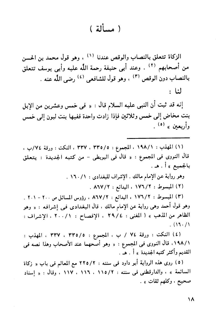 الزكاة تتعلق بالنصاب والوقص عندنا، وهو قول محمد بن الحسن من أصحابهم. وعند أبي حنيفة رحمة الله عليه وأبي يوسف تتعلق بالنصاب دون الوقص، وهو قول الشافعي رضي الله عنه.