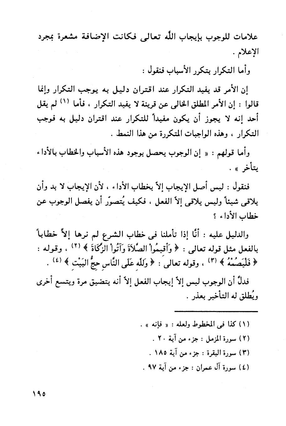 إن الأمر قد يفيد التكرار عند اقتران دليل به يوجب التكرار وإنما قالوا: إن الأمر المطلق الخالي عن قرينة لا يفيد التكرار، فأما لم يقل أحد إنه لا يجوز أن يكون مفيداً للتكرار عند اقتران دليل به فوجب التكرار، وهذه الواجبات المتكررة من هذا النمط.
