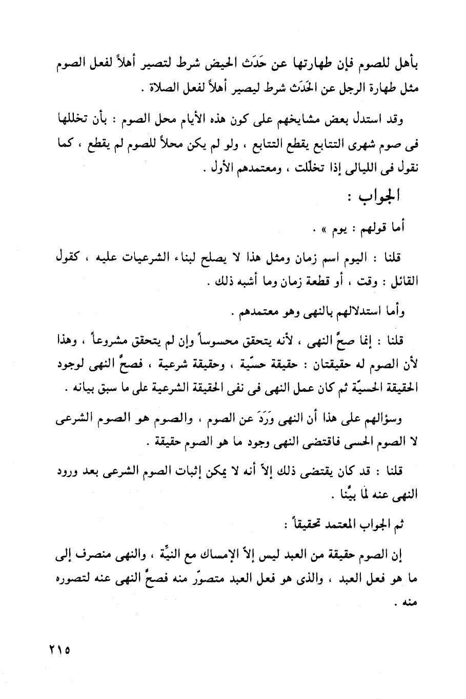 بأهل للصوم فإن طهارتها عن حدث الحيض شرط لتصير أهلاً لفعل الصوم مثل طهارة الرجل عن الحدث شرط ليصير أهلاً لفعل الصلاة.