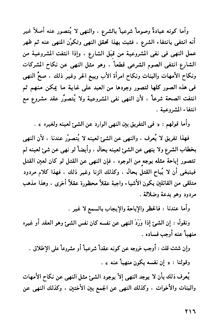 فهذا تفريق لا يعرف، والنهي عن الشيء لعينه لا يتصور عندنا، لأن النهي بخطاب الشرع ولا ينهي عن الشيء لعينه بحال، وأيضاً لو نهى عن شيء لعينه لم تتصور إباحة مثله بوجه من الوجوه، فإن النهي عن القتل لو كان لعين القتل فينبغي أن لا يباح القتل بحال، وكذلك الزنا وغير ذلك، فهذا كلام مردود متلقي من القائلين بكون الأشياء واجبة عقلاً محظورة عقلاً أخرى، وهذا مذهب مردود وهو بدعة وضلالة.