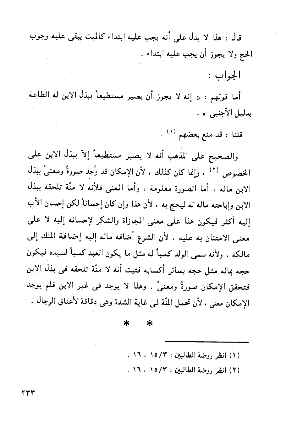 أما قولهم: ((إنه لا يجوز أن يصير مستطيعاً ببذل الابن له الطاعة بدليل الأجنبي)).