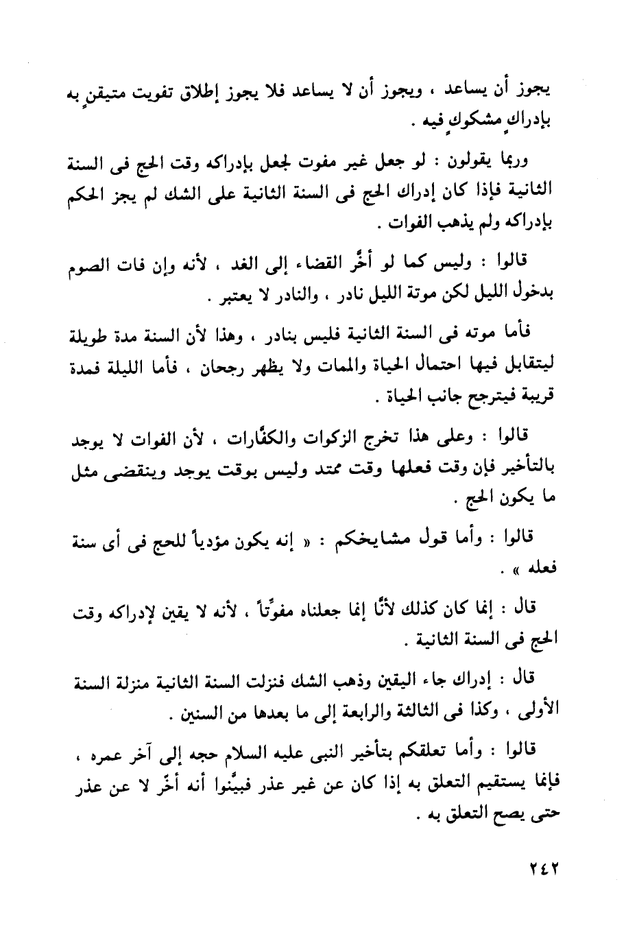 قالوا: وأما تعلقكم بتأخير النبي عليه السلام حجه إلى آخر عمره، فإنما يستقيم التعلق به إذا كان عن غير عذر فبينوا أنه أخر لا عن عذر حتى يصح التعلق به.