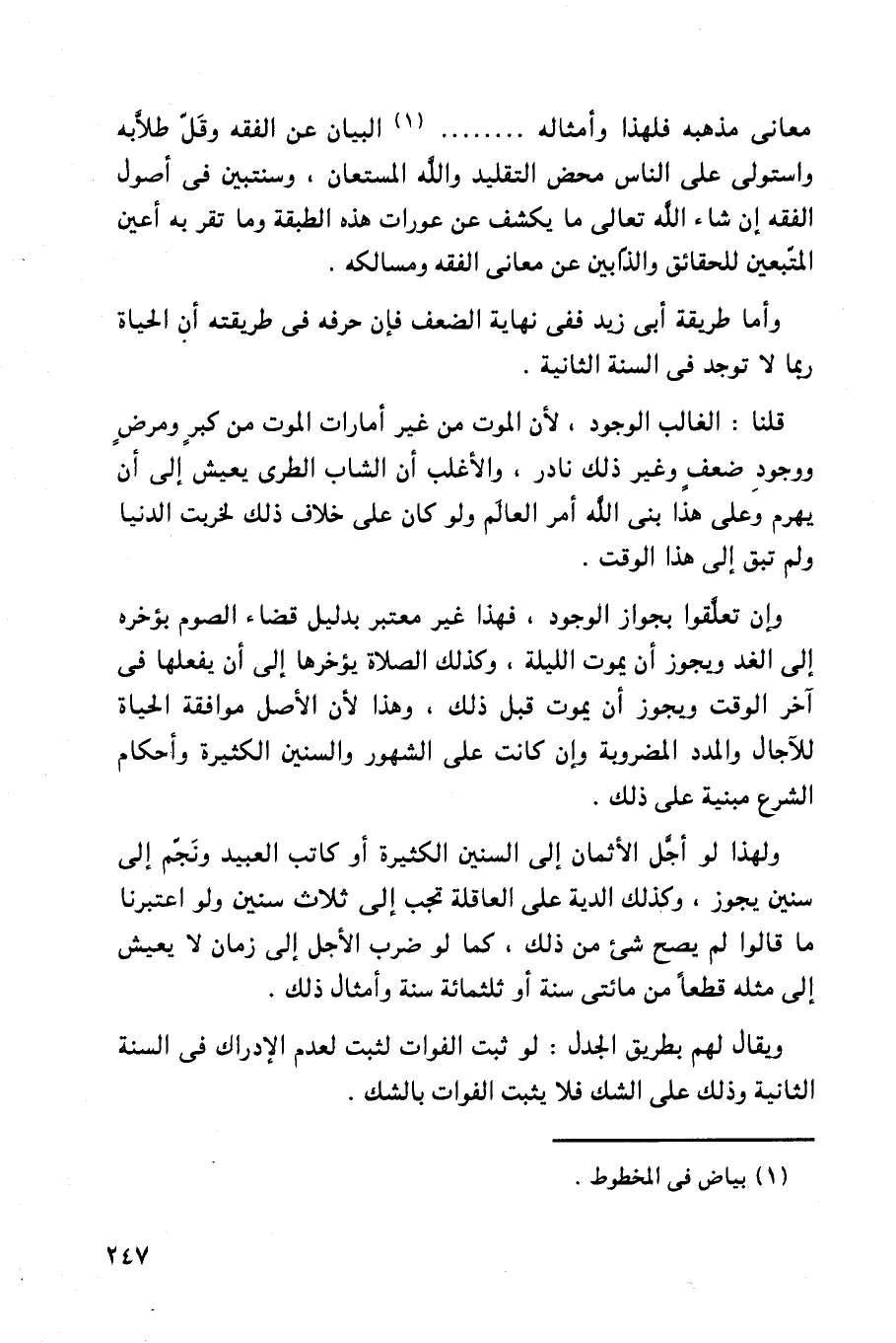 وأما طريقة أبي زيد ففي نهاية الضعف فإن حرفه في طريقته أن الحياة ربما لا توجد في السنة الثانية.