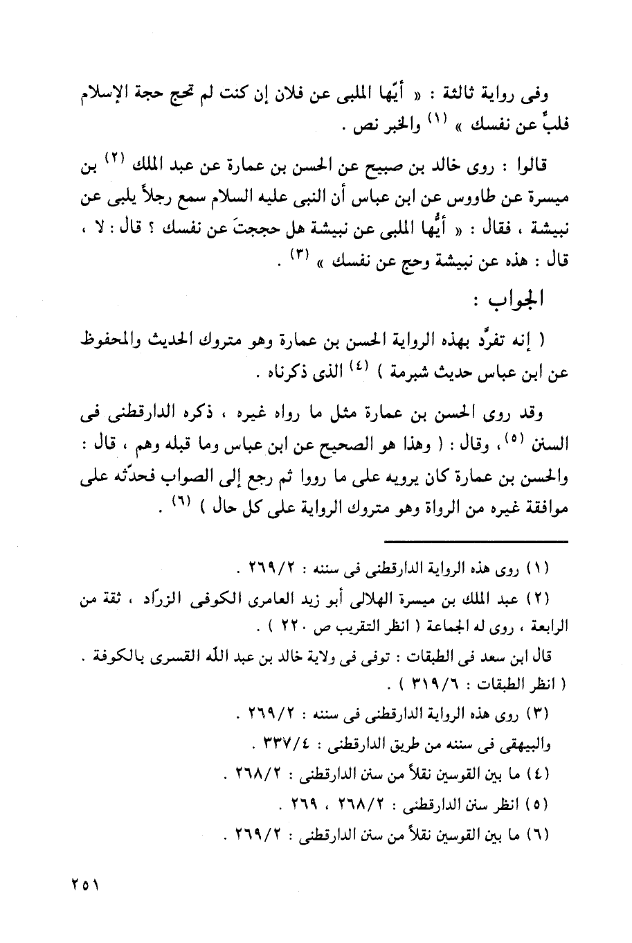 قالوا: روى خالد بن صبيح عن الحسن بن عمارة عن عبد الملك بن ميسرة عن طاووس عن ابن عباس أن النبي عليه السلام سمع رجلاً يلبي عن نبيشة، فقال: (أيها الملبي عن نبيشة هل حججت عن نفسك؟ قال: لا، قال: هذه عن نبيشة وحج عن نفسك)).