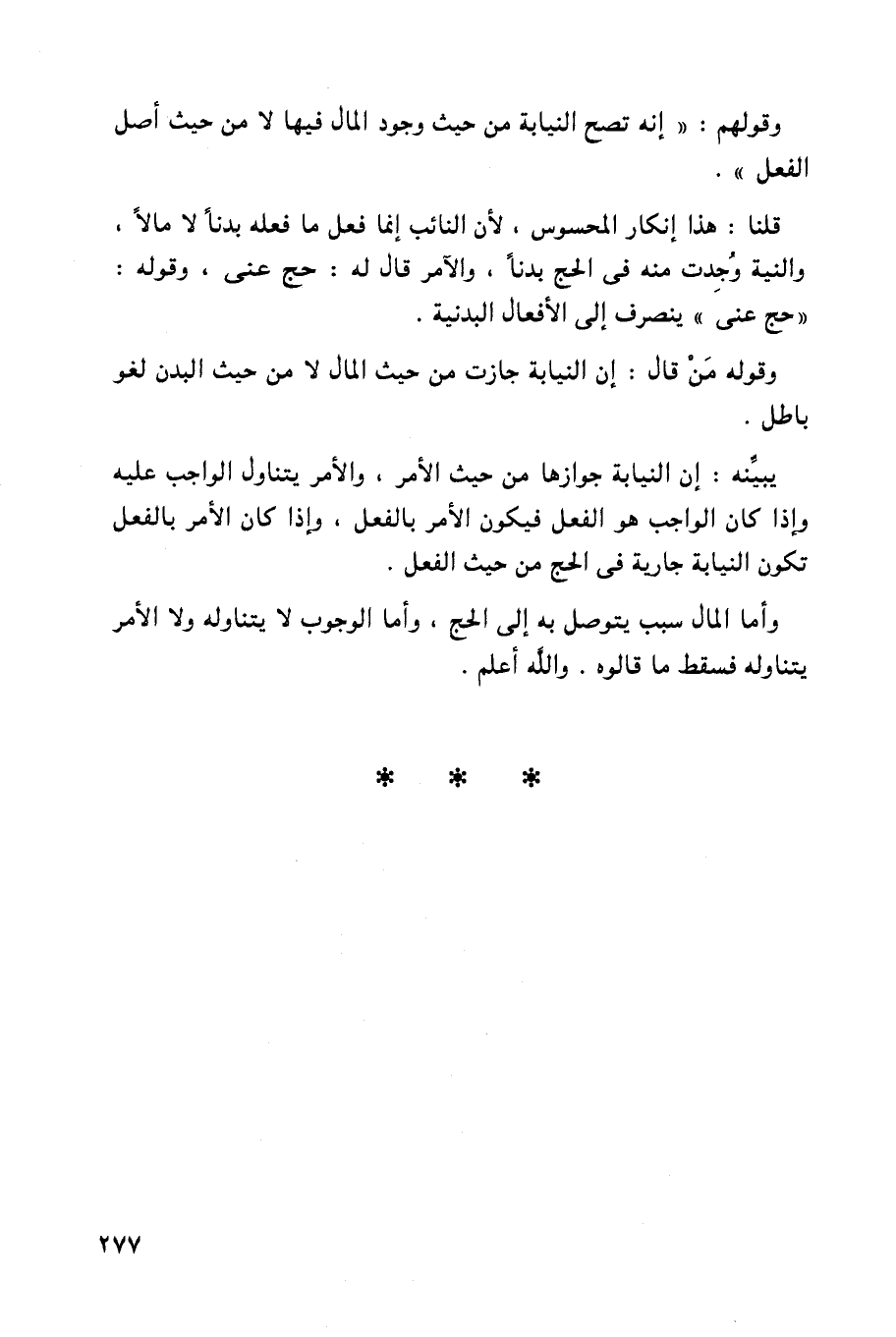 وقوله من قال: إن النيابة جازت من حيث المال لا من حيث البدن لغو باطل.