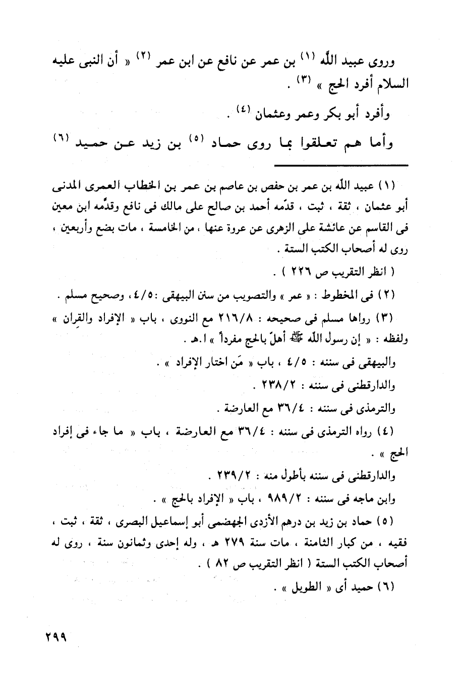 وروى عبيد الله بن عمر عن نافع عن ابن عمر ((أن النبي عليه السلام أفرد الحج)).