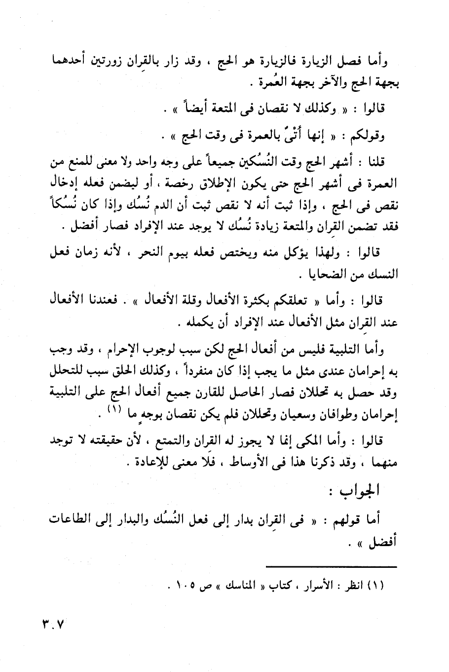 وأما فصل الزيارة فالزيارة هو الحج، وقد زار بالقران زورتين أحدهما بجهة الحج والآخر بجهة العمرة.