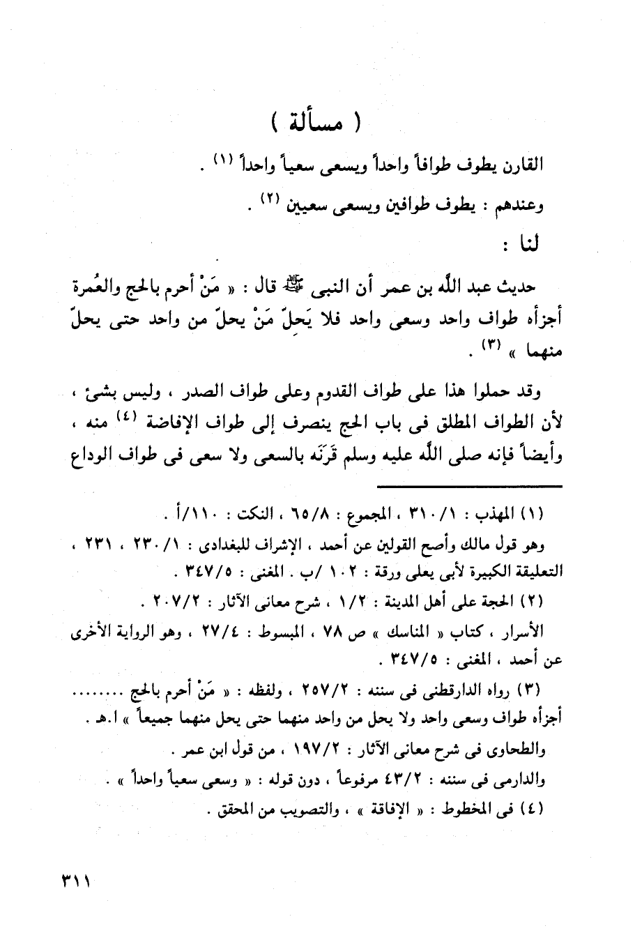 القارن يطوف طوافاً واحداً ويسعى سعياً واحداً.