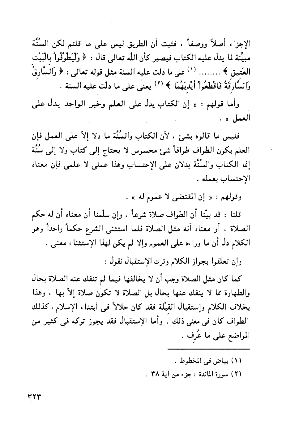 فليس ما قالوه بشيء، لأن الكتاب والسنة ما دلا إلا على العمل فإن العلم بكون الطواف طوافاً شيء محسوس لا يحتاج إلى كتاب ولا إلى سنة إنما الكتاب والسنة يدلا على الاحتساب وهذا عملي لا علمي فإن معناه الاحتساب بعمله.