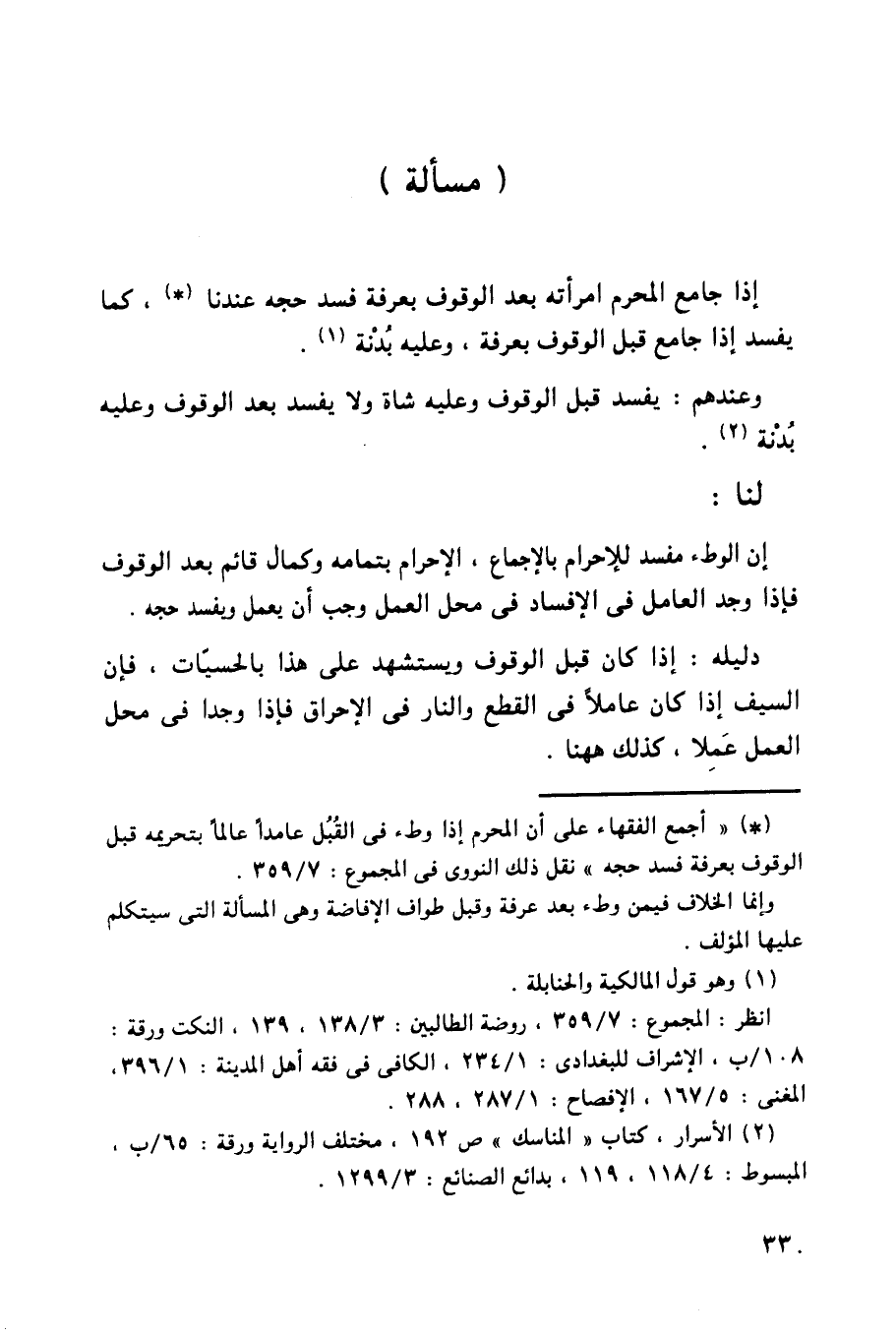 إن الوطء مفسد للإحرام بالإجماع، الإحرام بتمامه وكمال قائم بعد الوقوف فإذا وجد العامل في الإفساد في محل العمل وجب أن يعمل ويفسد حجه.