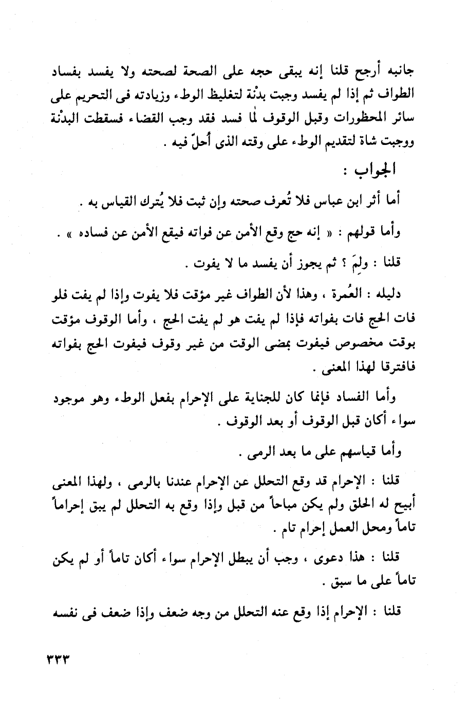 وأما قولهم: ((إنه حج وقع الأمن عن فواته فيقع الأمن عن فساده)).