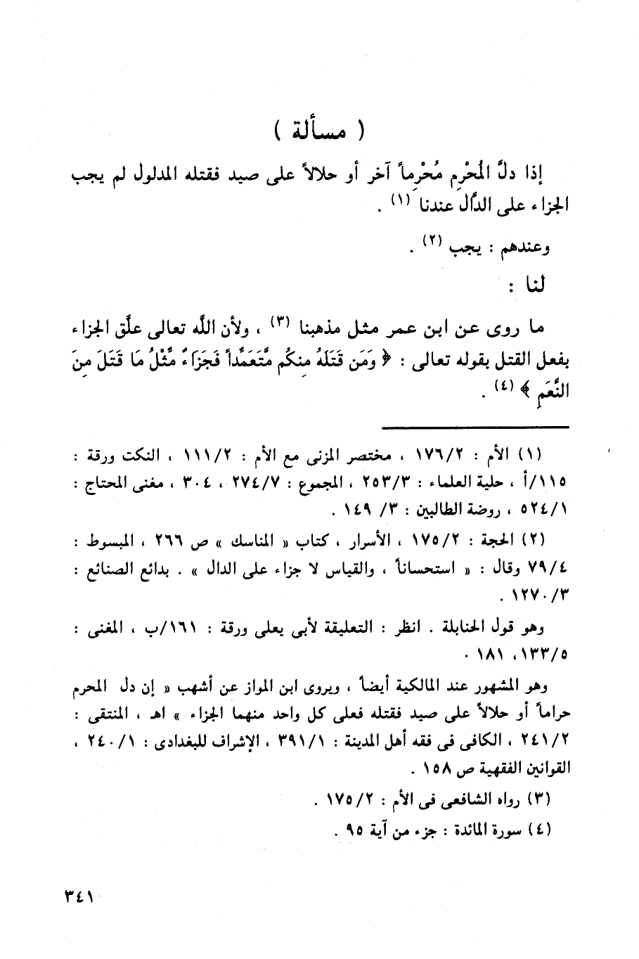 إذا دل المحرم محرماً آخر أو حلالاً على صيد فقتله المدلول لم يجب الجزاء على الدال عندنا.