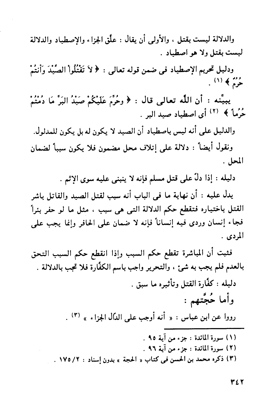يدل عليه: أن نهاية ما في الباب أنه سبب لقتل الصيد والقاتل باشر القتل باختياره فتقطع حكم الدلالة التي هي سبب، مثل ما لو حفر بئراً فجاء إنسان وردي فيه إنساناً فإنه لا ضمان على الحافر وإنما يجب على المردي.