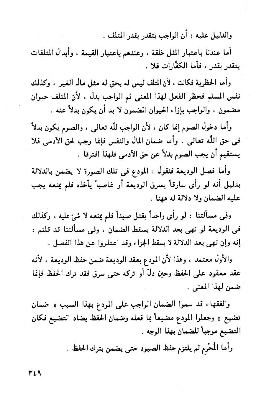 والدليل عليه: أن الواجب يتقدر بقدر المتلف.