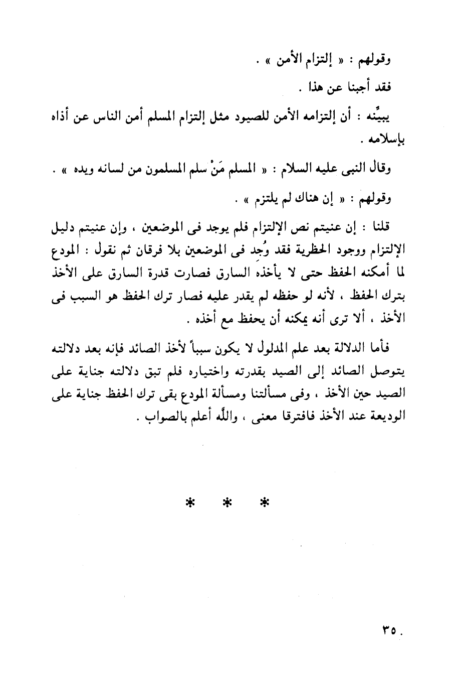 يبينه: أن التزامه الأمن للصيود مثل التزام المسلم أمن الناس عن أذاه بإسلامه.