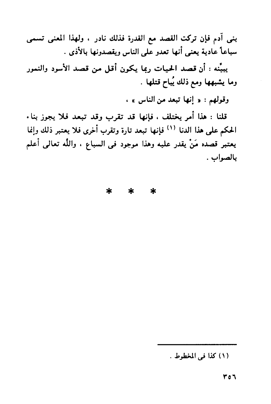 يبينه: أن قصد الحيات ربما يكون أقل من قصد الأسود والنمور وما يشببهها ومع ذلك يباح قتلها.