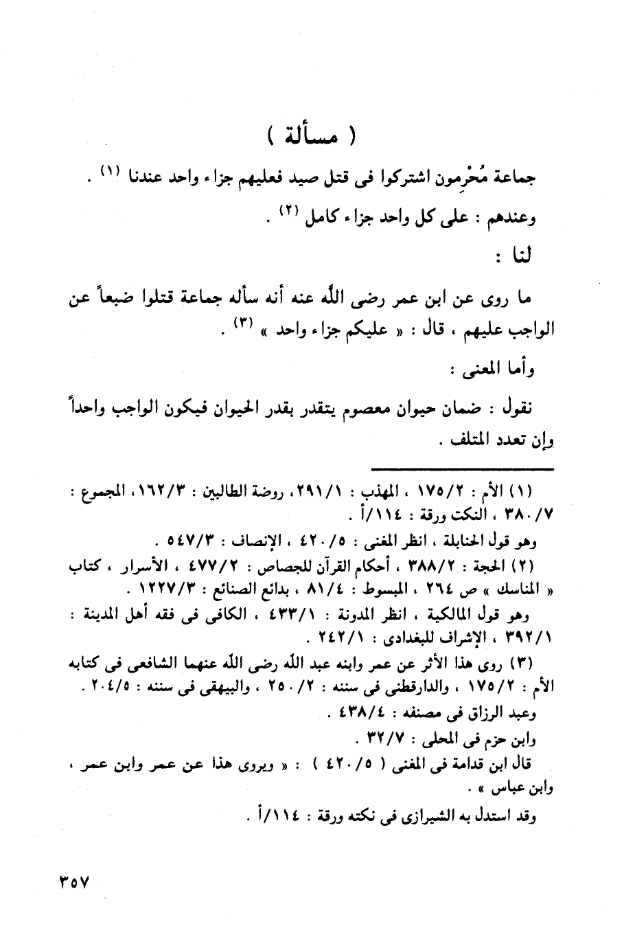 جماعة محرمون اشتركوا في قتل صيد فعليهم جزاء واحد عندنا.