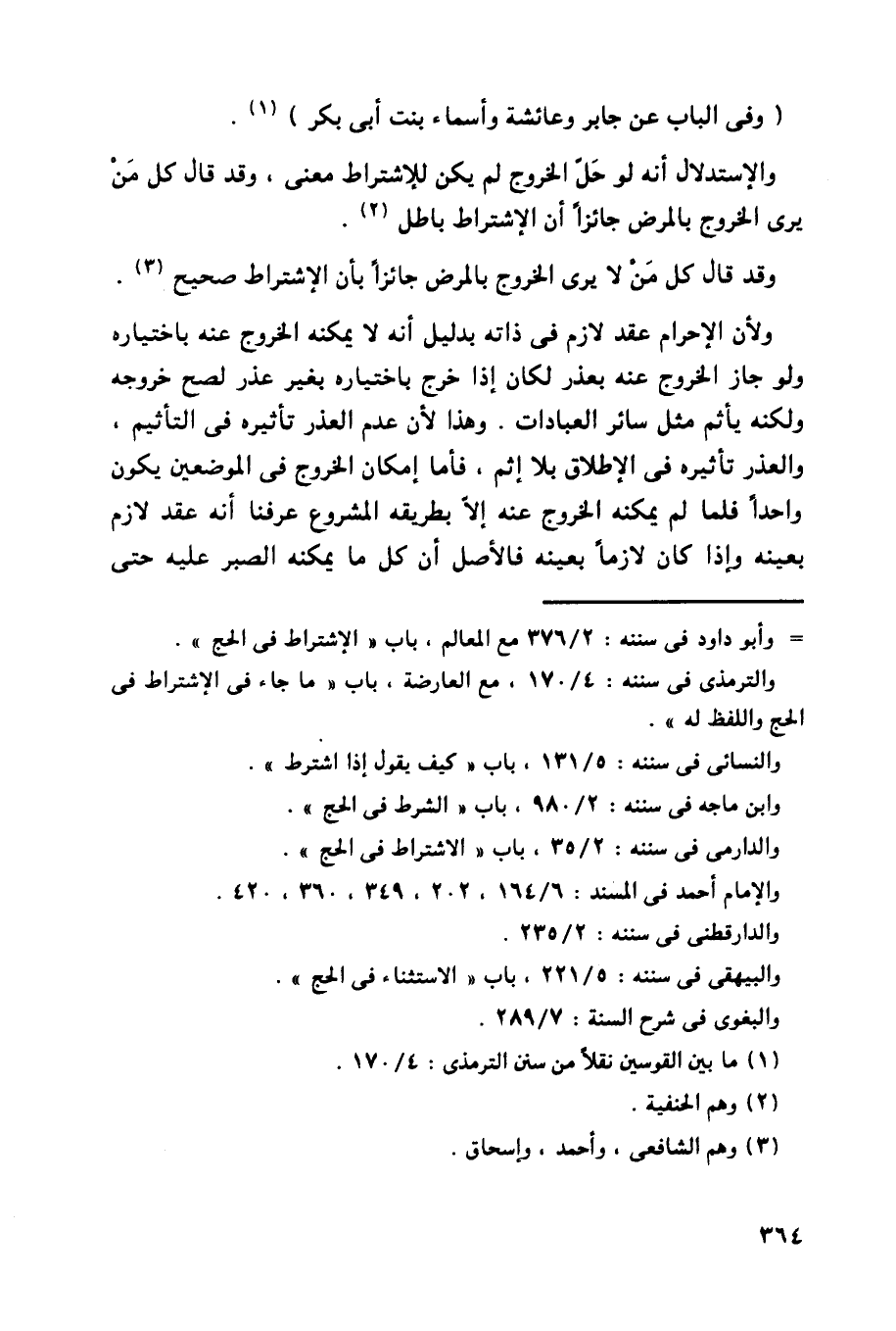 والاستدلال أنه لو حل الخروج لم يكن للاشتراط معنى، وقد قال كل من يرى الخروج بالمرض جائزاً أن الاشتراط باطل.