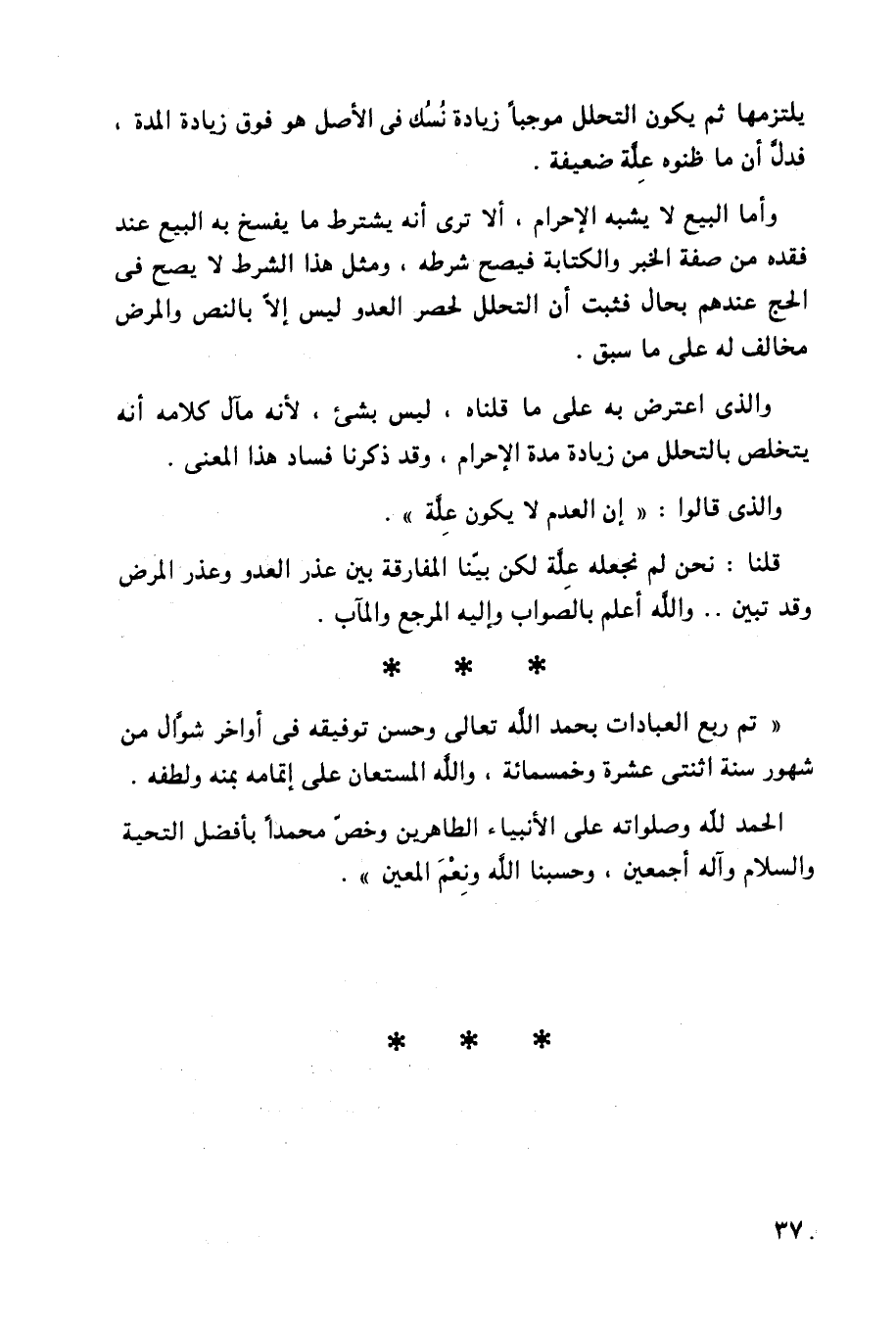 يلتزمها ثم يكون التحلل موجباً زيادة نسك في الأصل هو فوق زيادة المدة، فدل أن ما ظنوه علة ضعيفة.