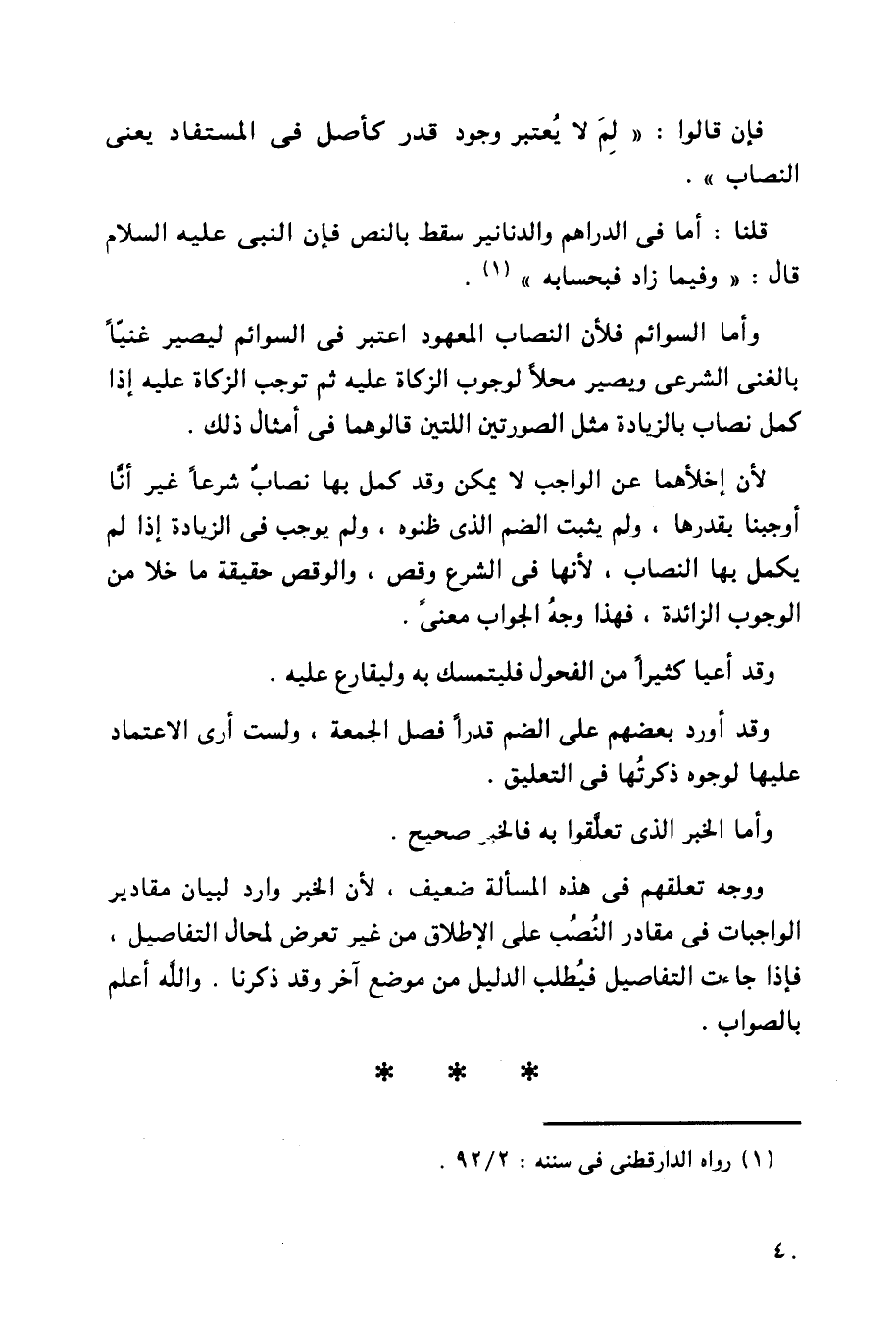 وأما السوائم فلأن النصاب المعهود اعتبر في السوائم ليصير غنياً بالغنى الشرعي ويصير محلاً لوجوب الزكاة عليه ثم توجب الزكاة عليه إذا كما نصاب بالزيادة مثل الصورتين اللتين قالوهما في أمثال ذلك.